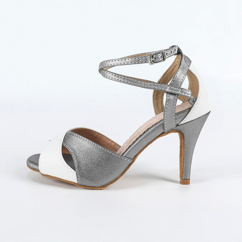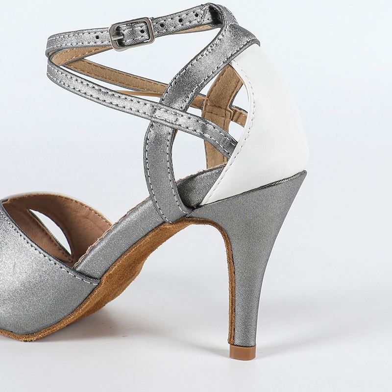 DS Women's Gray PU Customized Heel Latin Shoes Ballroom Dance Shoes