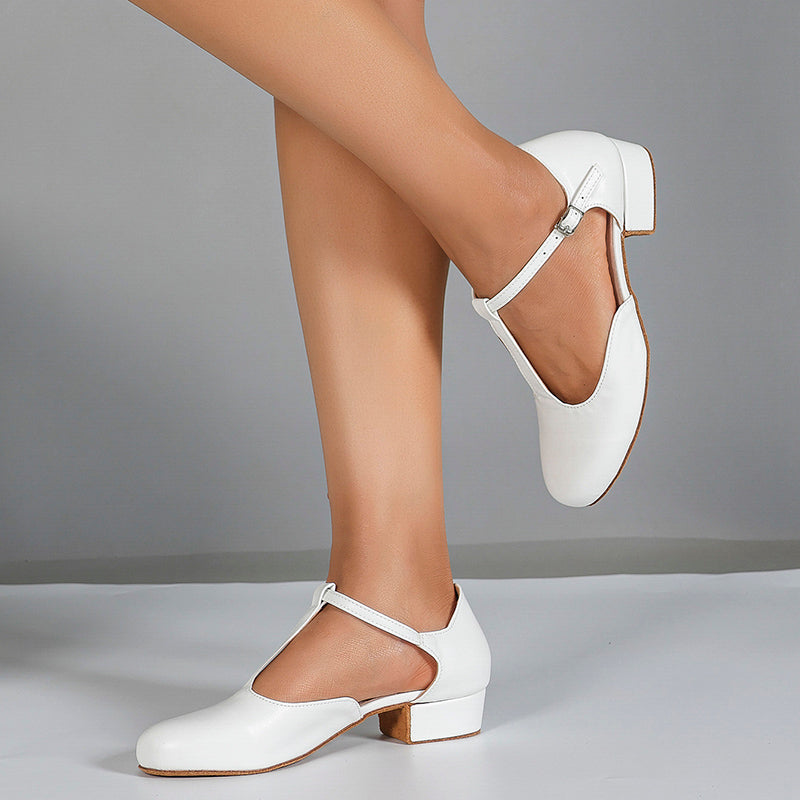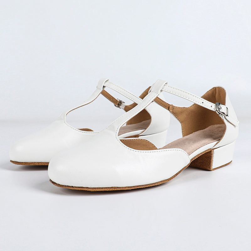 from 2367 reviewsShoes are as described and pictured. True to size, ordered my usual 7.5. Wore them twice to dance class and are comfortable. Received compliments. I have narrow feet and find them to be roomy in the front, but still has enough support. Yes, will get scratches on the white lacquered part. Wish company would offer 2.5” heel option. I purchased the 2 3/4 and they are a wee high for me but didn't want 2.1”. Good shoe and would recommend.