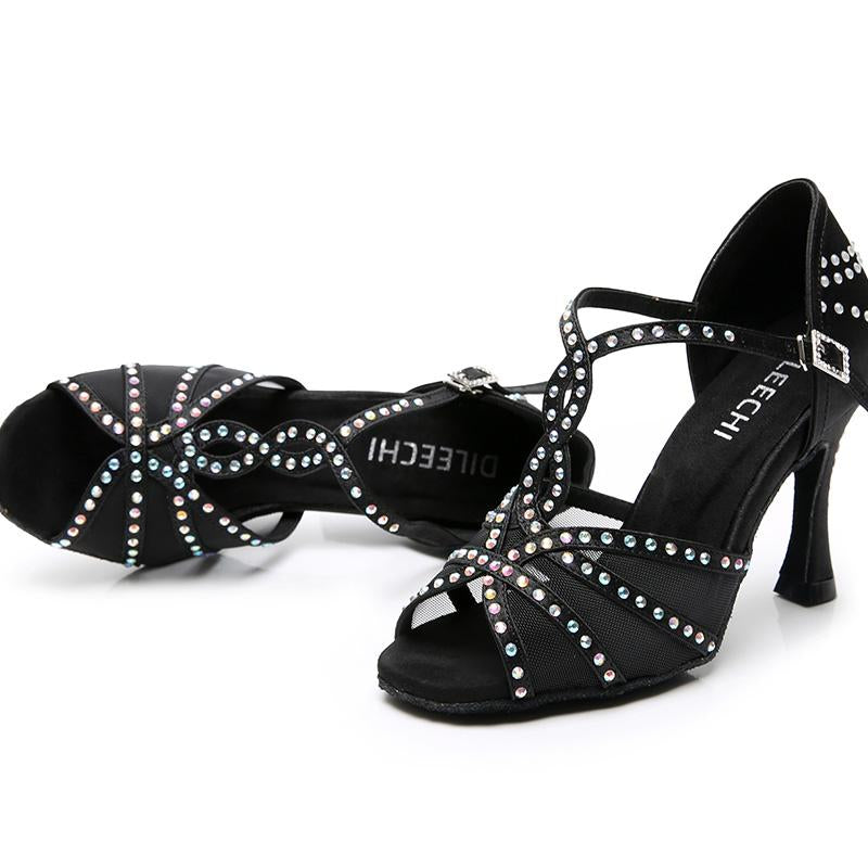 Women's Satin Customized Heel Ballroom Dance Shoes Latin Shoes