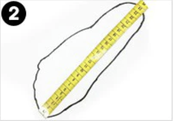 Put a piece of paper on the floor, place your bare foot on the paper. Hold the pencil straight against your foot and trace the outline of your foot.(Reminder: It is more accurate measuring with socks or stockings you will wear for new shoes.)