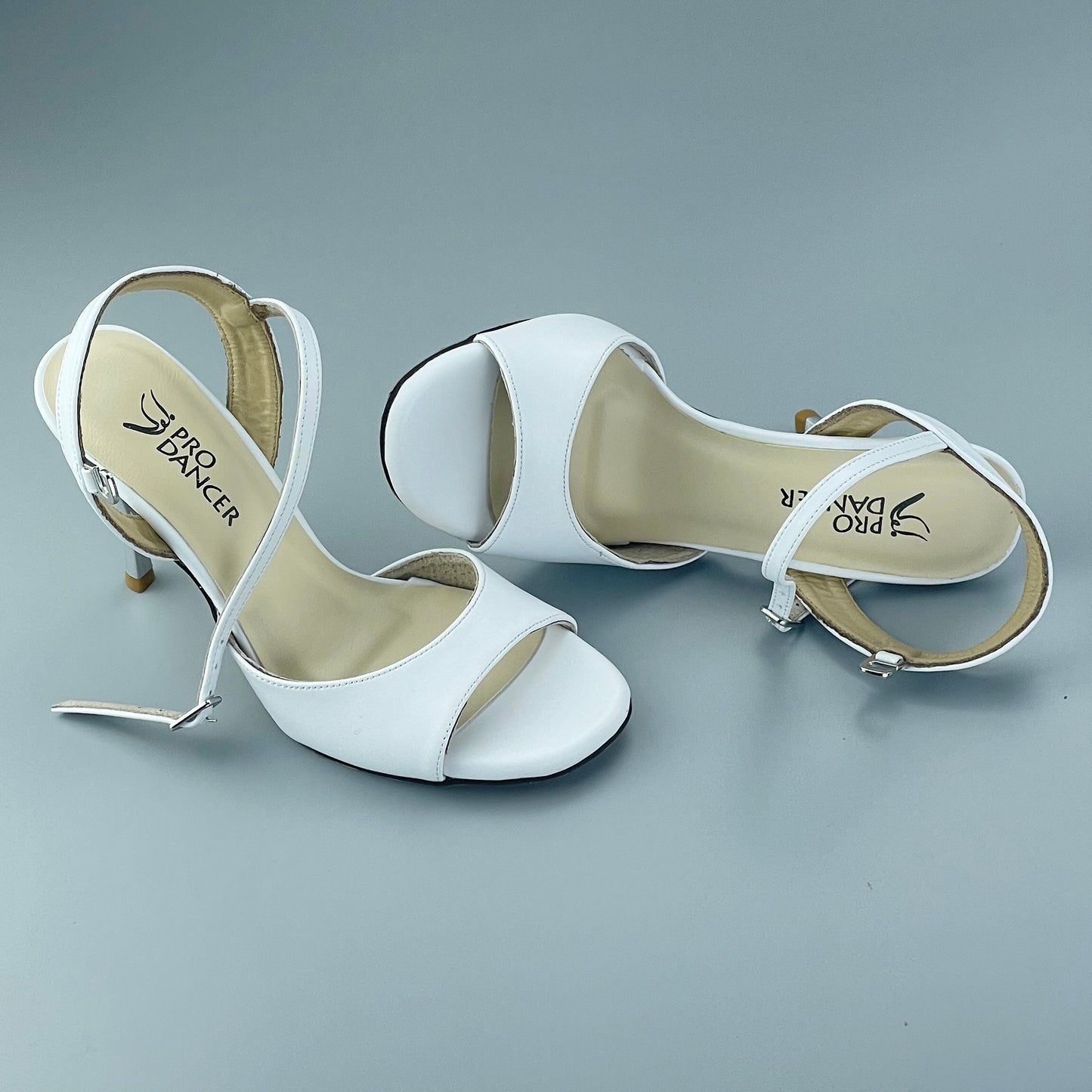SHJ Women's White Real Leather 7.5cm/9.5cm Heels Dance Tango Shoes