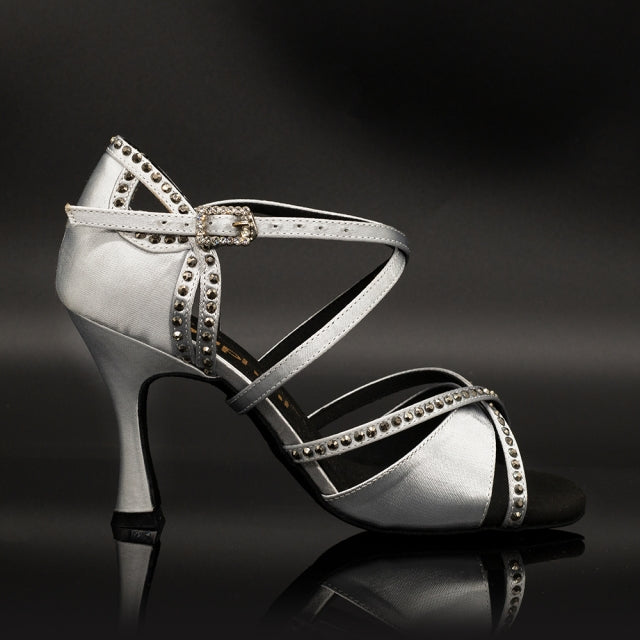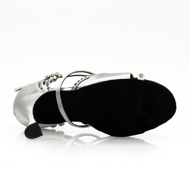 Scarpe da ballo con il tacco aperto da donna personalizzato con cristalli