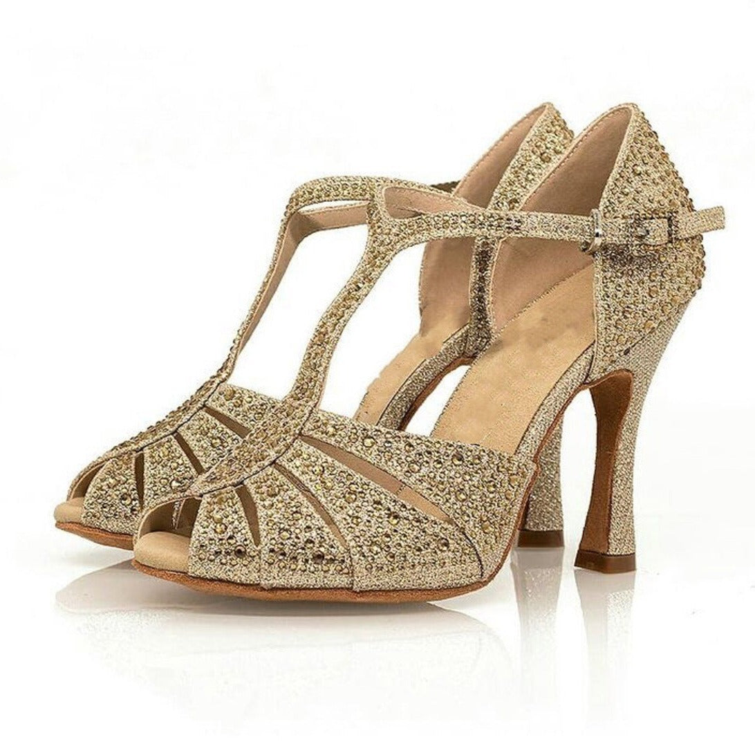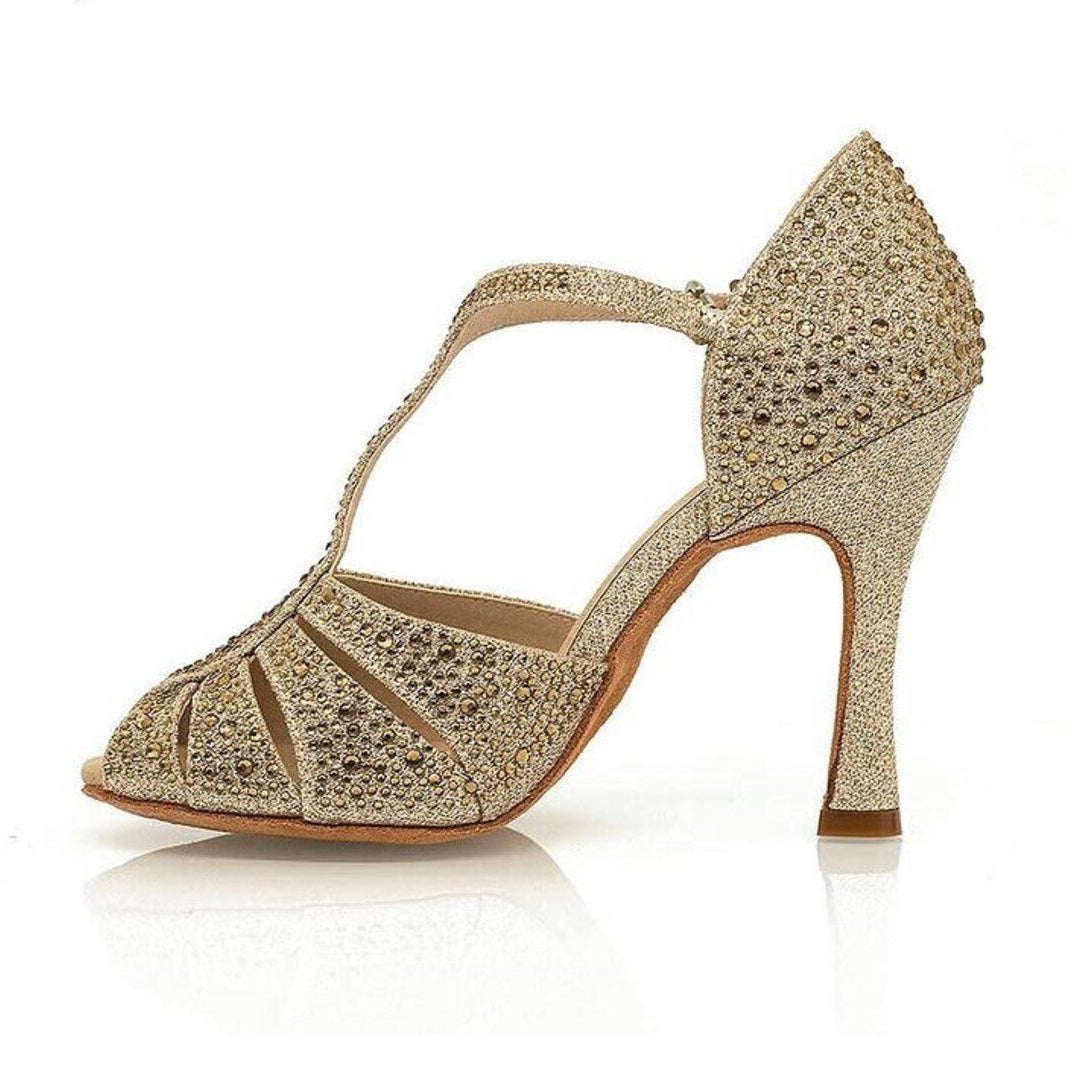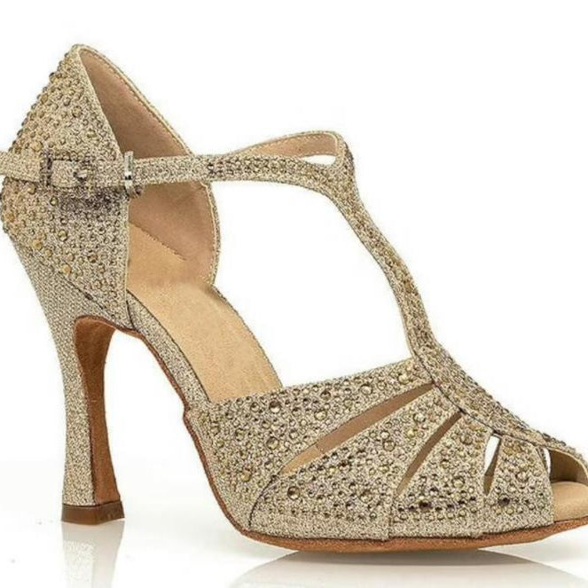 Beautiful gold dance shoes very comfortable fit. I love to dance in these shoes.