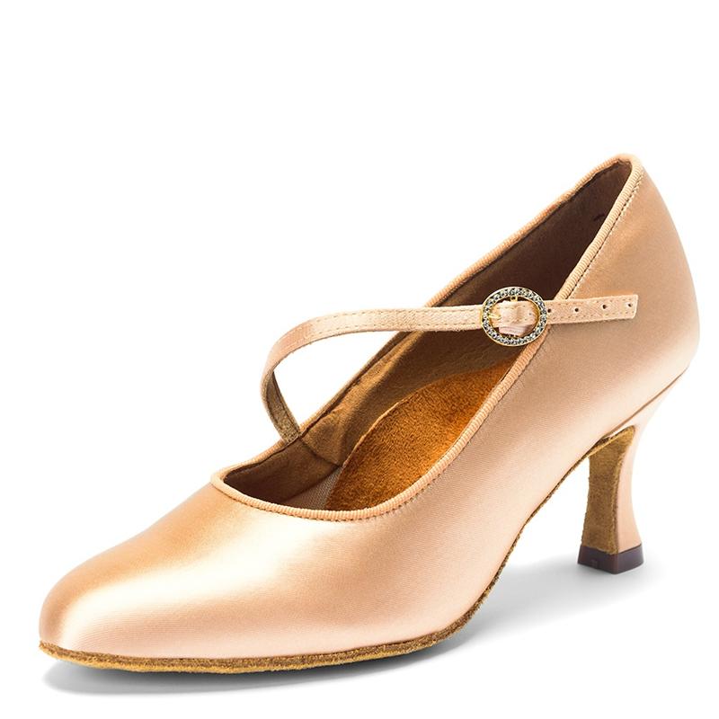 Women's Brown Satin Heels Pumps Ballroom Modern Shoes Dance Shoes