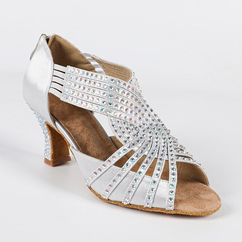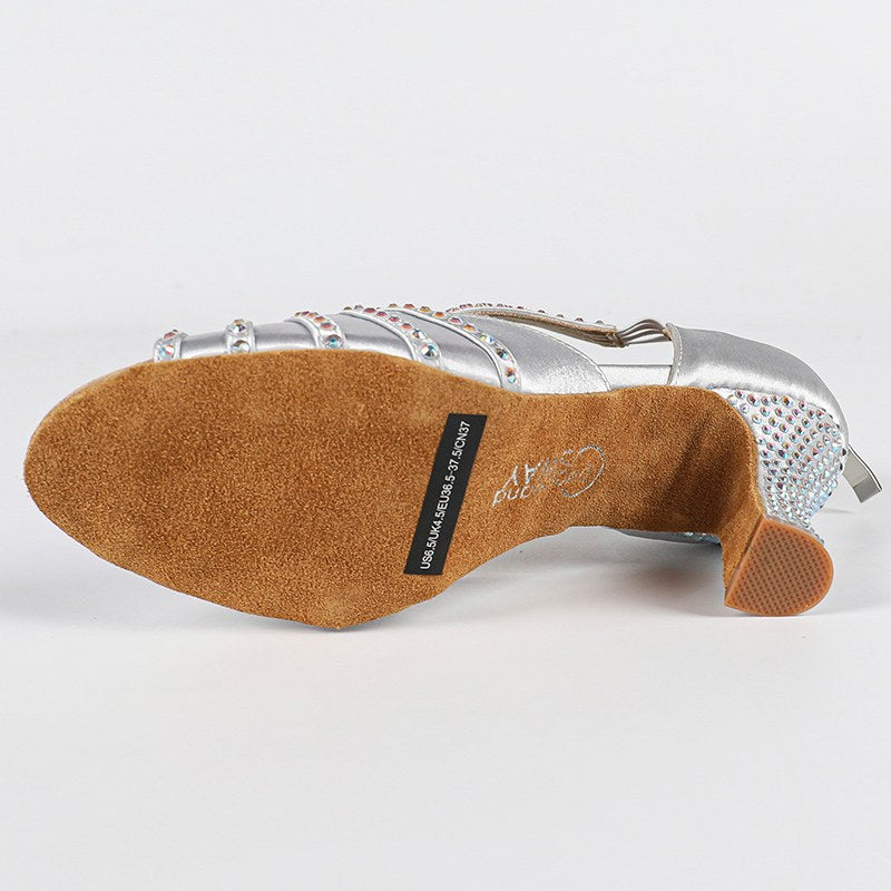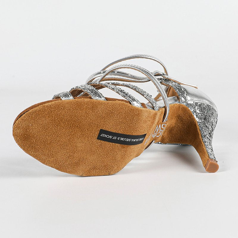 Buy dance shoes for women like satin lace customized heel, sparkling glitter, leatherette customized heel, or other form of shoes for Latin, ballroom and rhythm on a single platform at the market industry prices. Get standard, smooth finished and high-quality professional dance shoes, ladies can wear them on any occasion and performance.