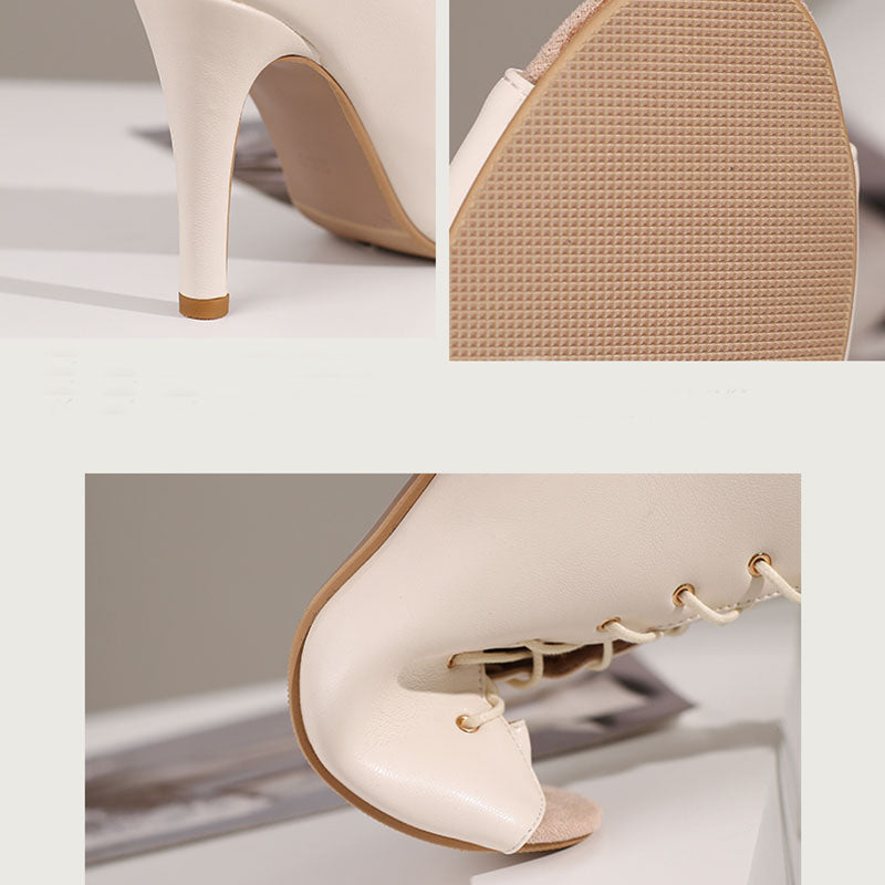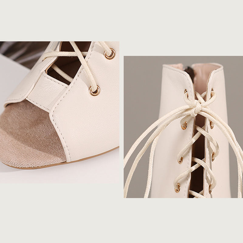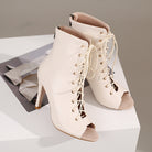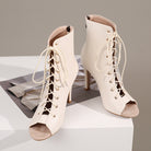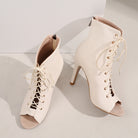 Women's Beige 7cm Slim Heel Rubber Sole Leatherette Jazz Shoes Lace-up Dance Heels Boots
