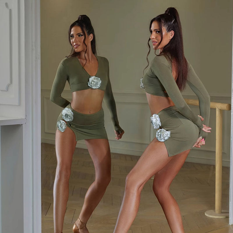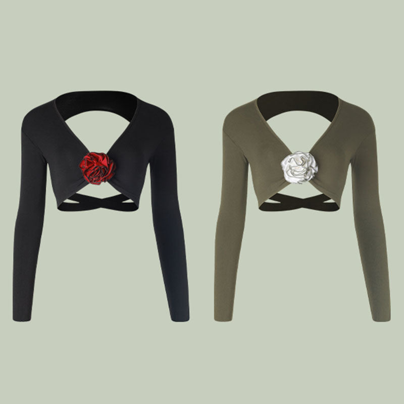 Z Women's Milk Silk Flower Long Sleeve Latin Dance Tops Dance Wear Dance Tops