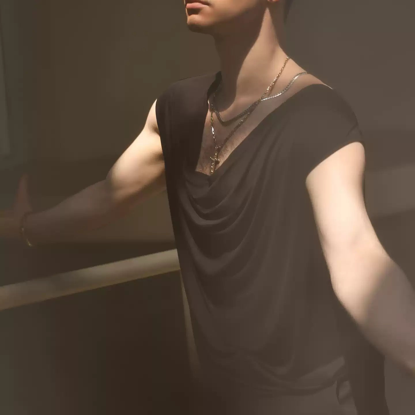YES Men's Black Sleeveless Latin Dance Tops Dance Wear