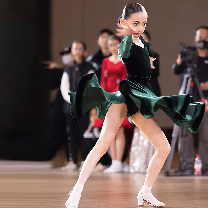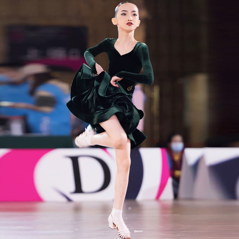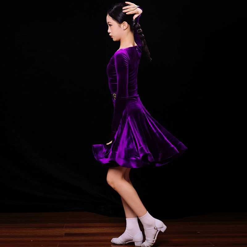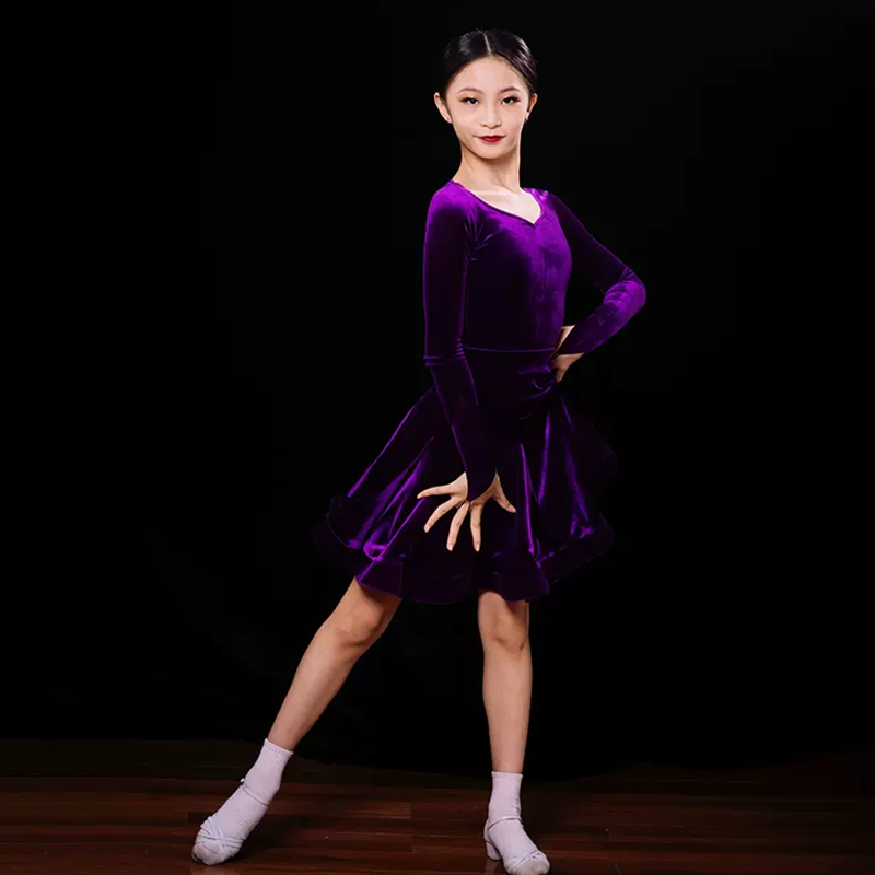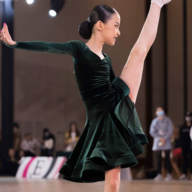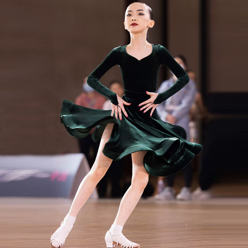 HC Girl's Long Sleeve Training Performance Latin Dance Dress Dance Wear