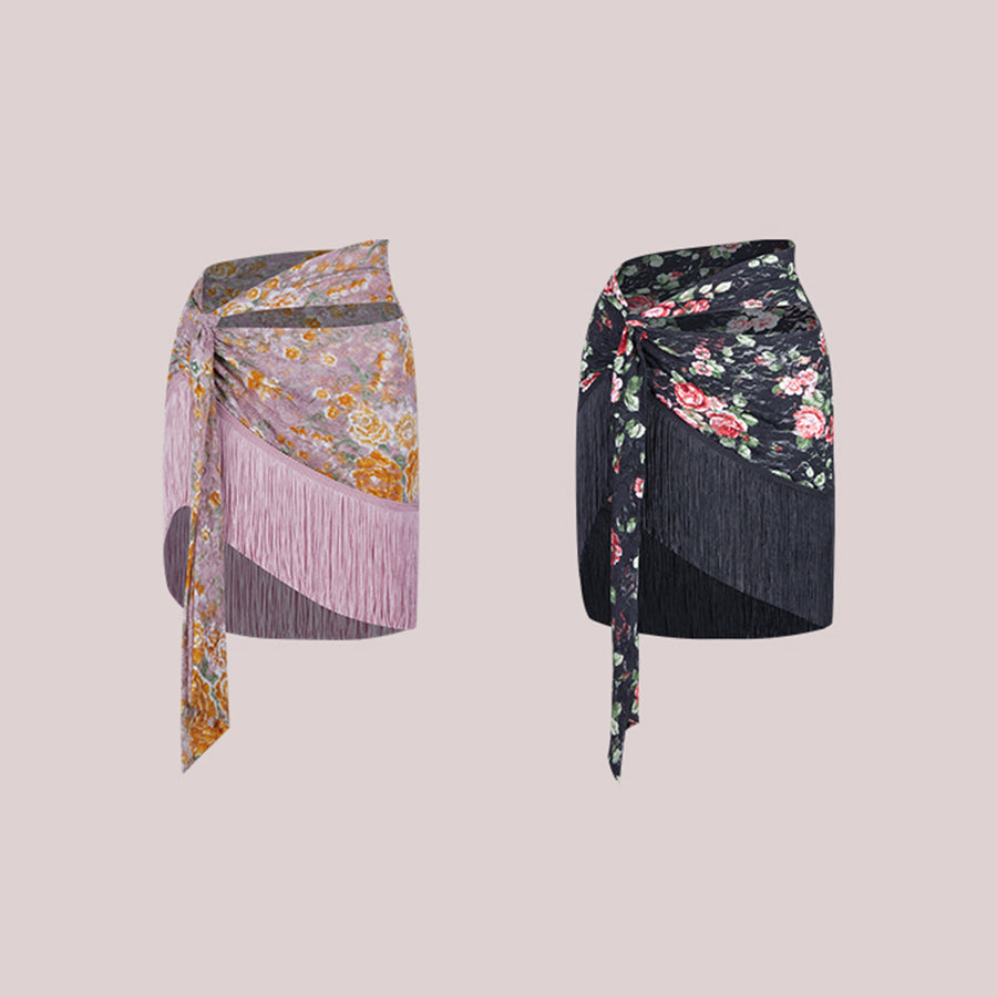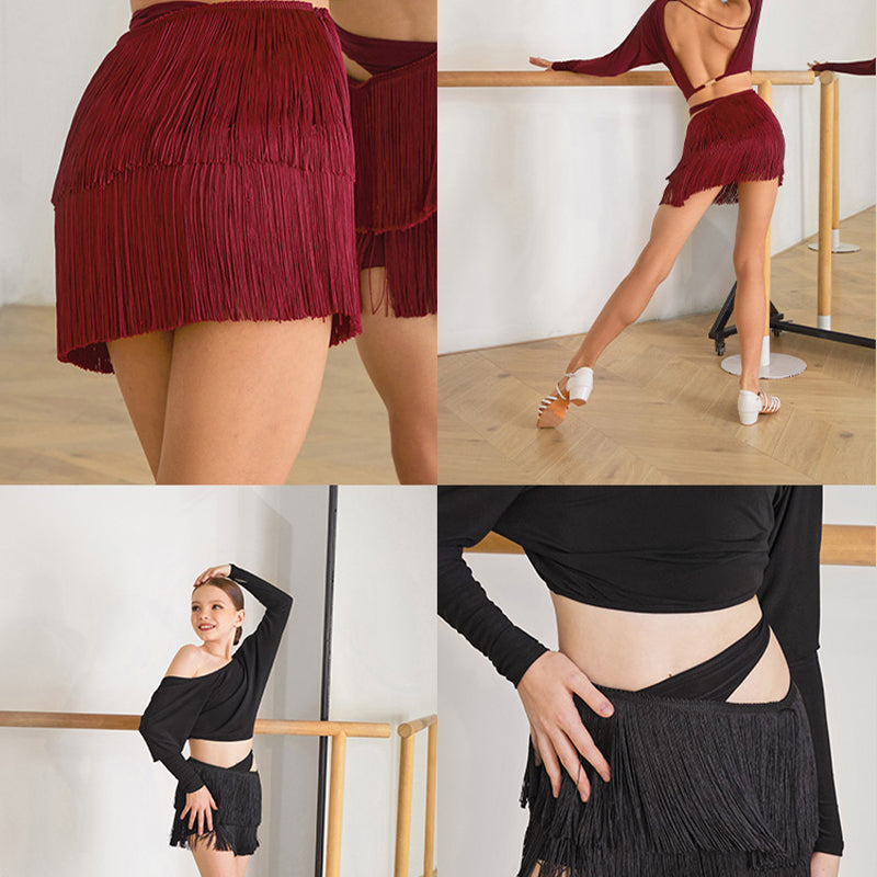 Women's Milk Silk Fabric Tassel Dance Skirt Training Performance Dancewear