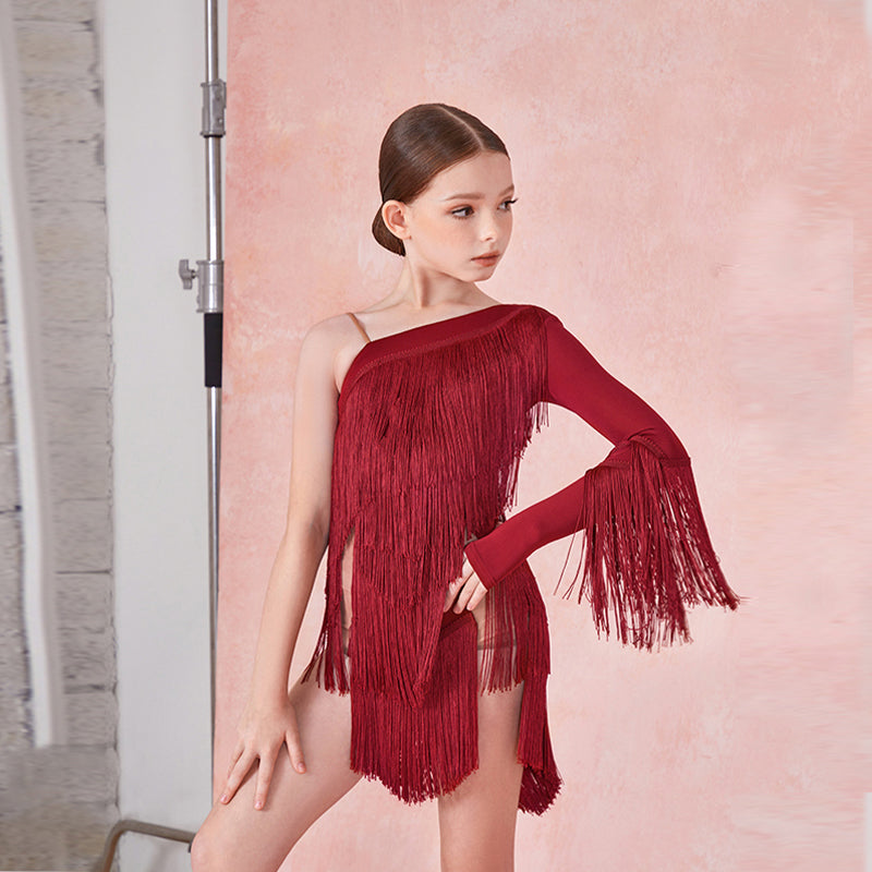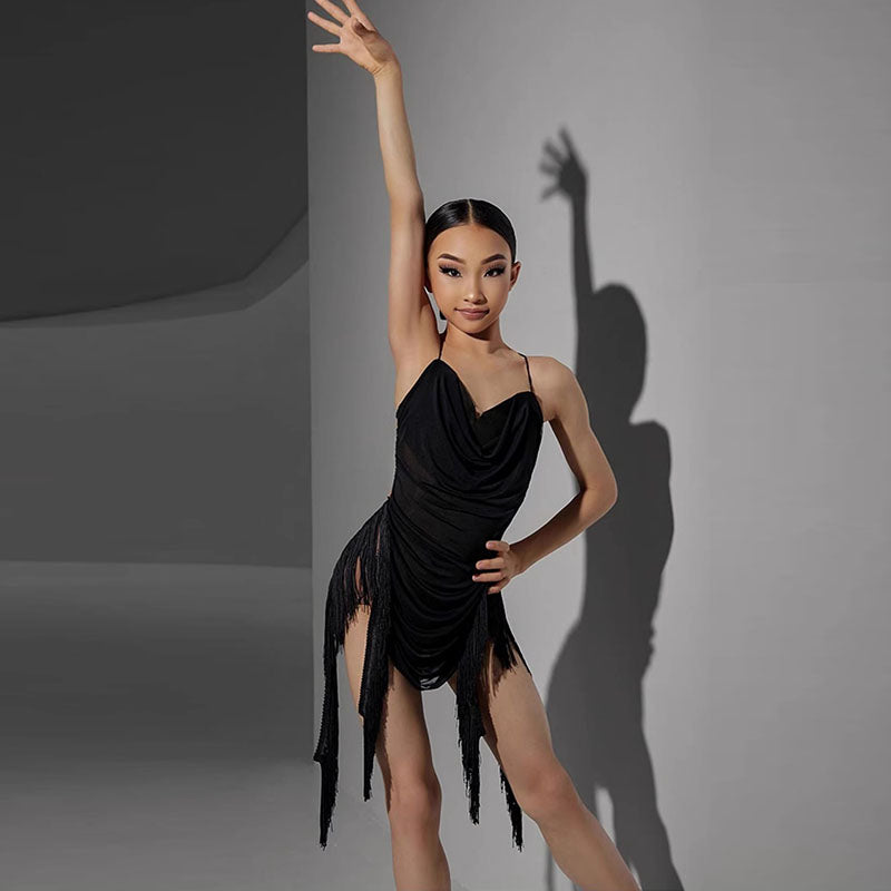 Z Women's Milk Silk Fabric Tassel Dance Dress Dance Wear Training Performance Dress