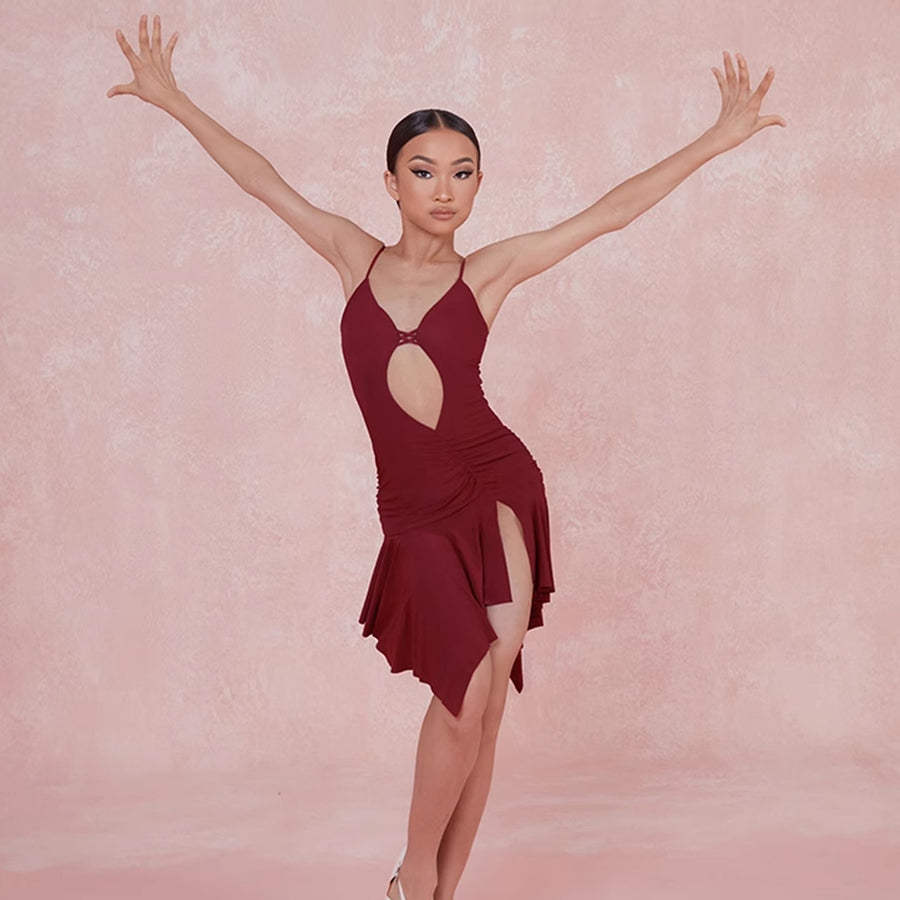 Customisable-Women's Rumba Spaghetti Straps Latin Dance Practice Dresses Performance Dresses