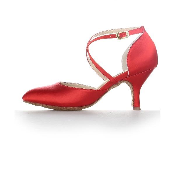 Women's Red Satin Customized Heel Ballroom Dance Shoes Modern Dance Shoes