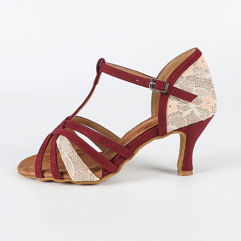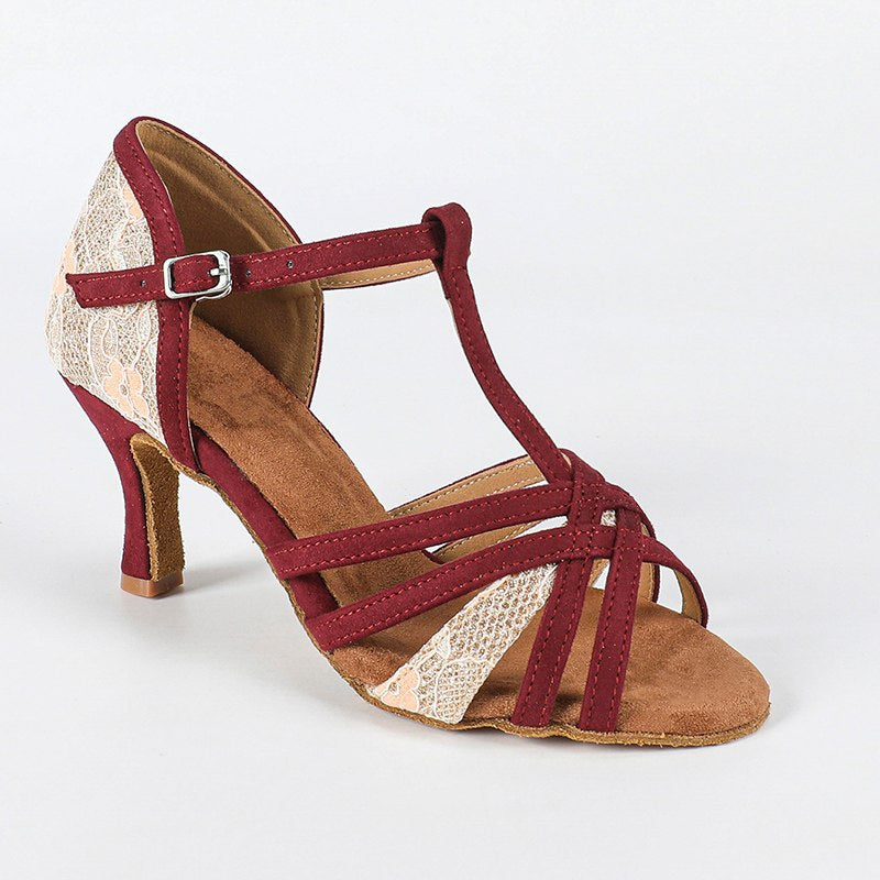 DS Women's Burgundy Customized Heel Latin Dance Shoes