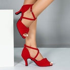 DS Women's Burgundy Customized Heel Latin Dance Shoes