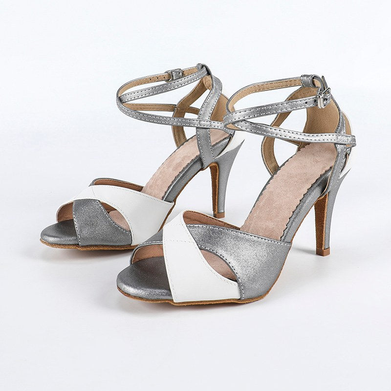 DS Women's Gray PU Customized Heel Latin Shoes Ballroom Dance Shoes