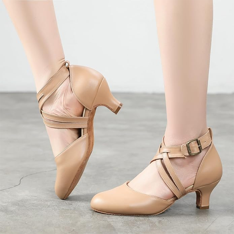 Women's Real Leather Customized Heel Ballroom Dance Shoes Retro Dancing Shoes