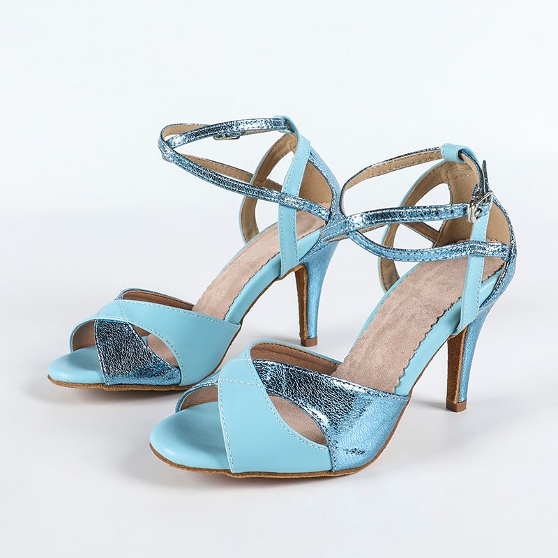 Women's Blue Rhinestone Satin Customized Heel Latin Dance Shoes