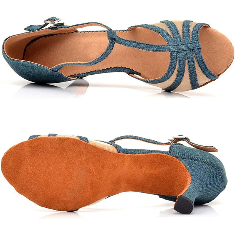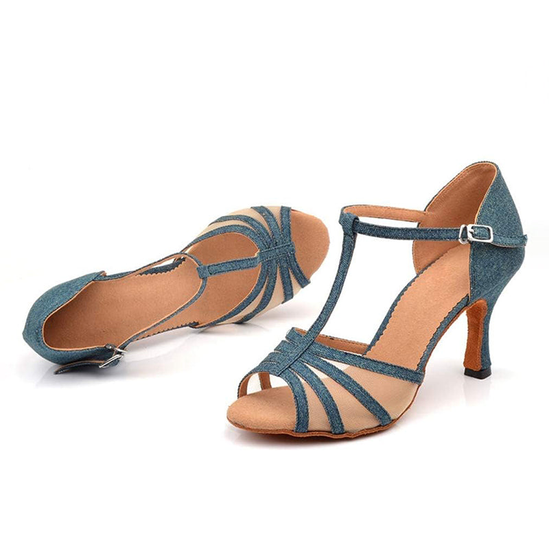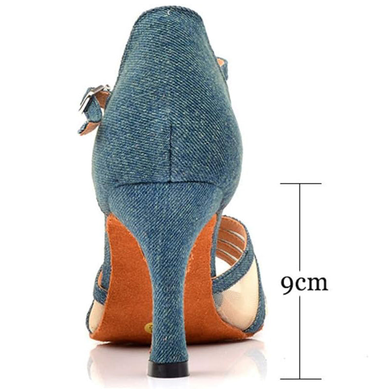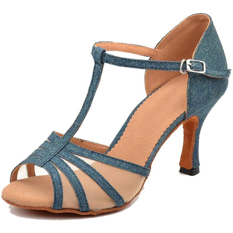 Women's Blue Customized Heel Demin Latin Shoes Ballroom Dance Shoes
