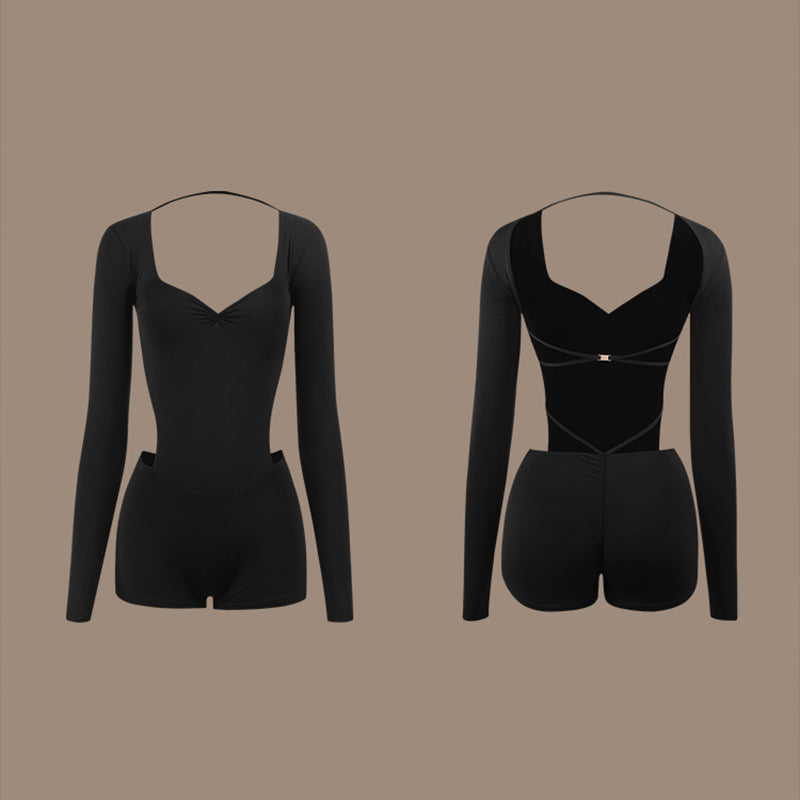 Z Women's Long Sleeve Backless Dance Tops Bodysuit Leotards Practice DanceWear
