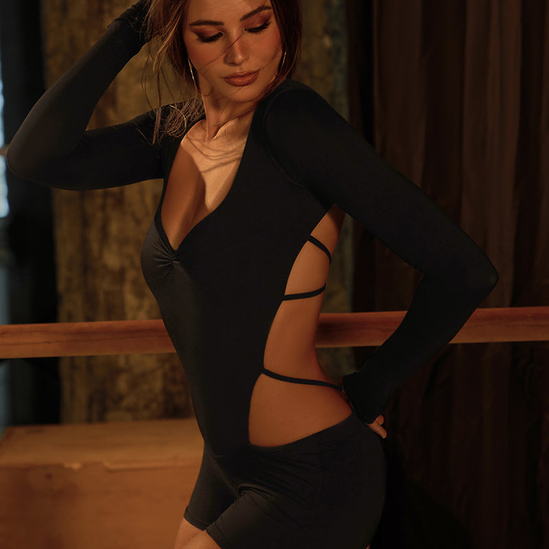 Z Women's Black Long Sleeve Backless Dance Tops Bodysuit Leotards Practice DanceWear