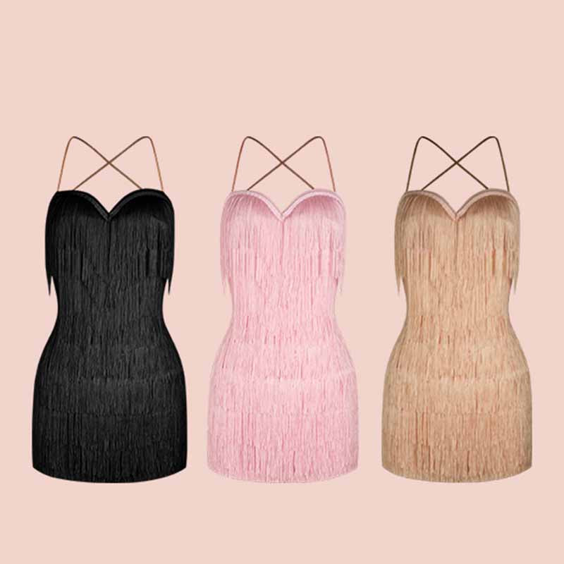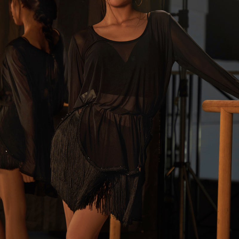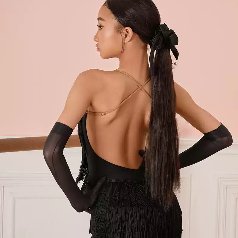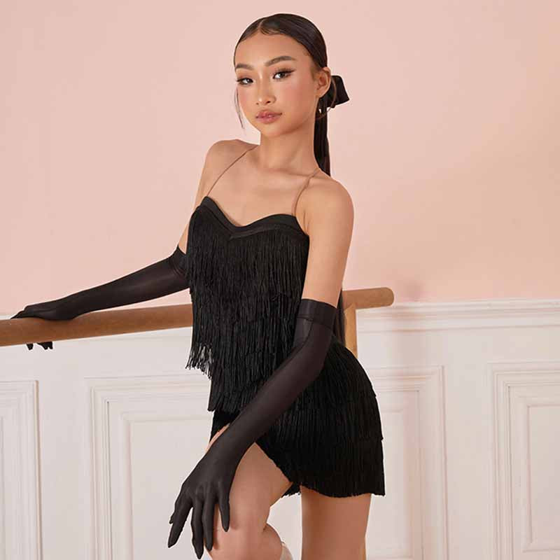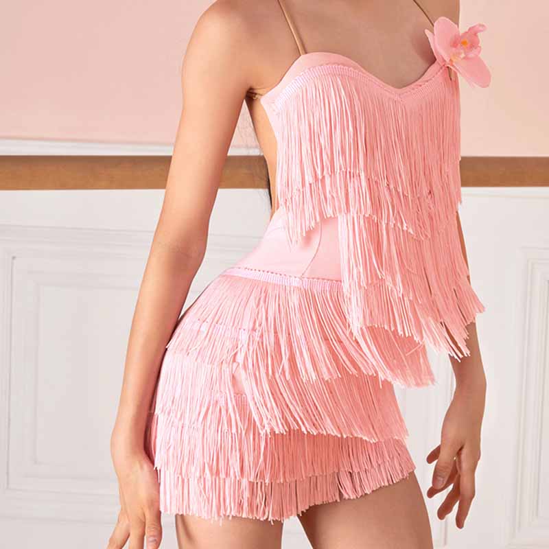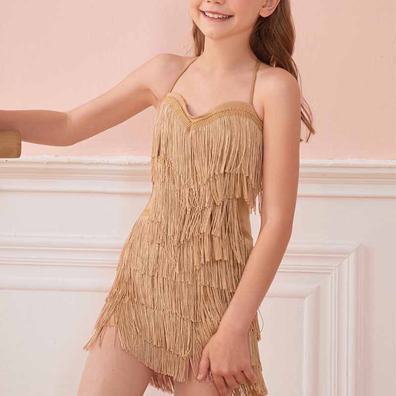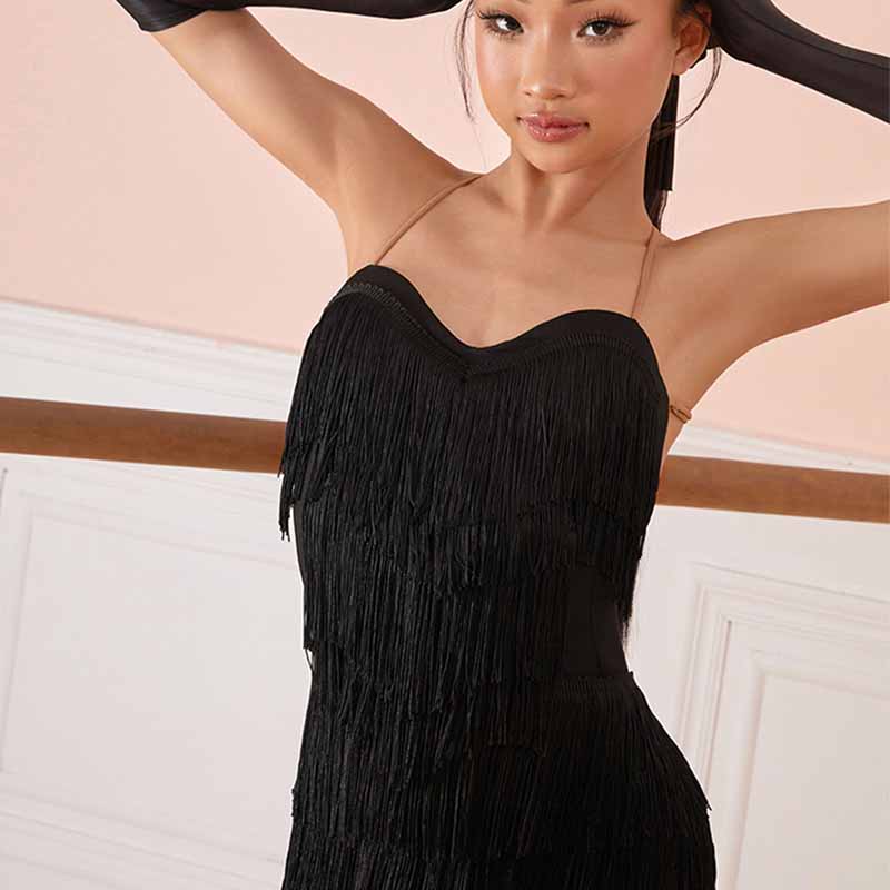 Z Women's Milk Silk Fabric Tassel Dance Dress Dance Wear Training Performance Dress