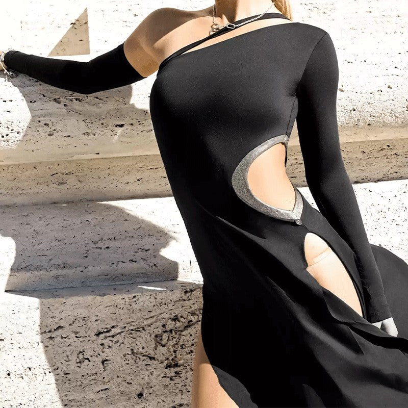 TID Customisable Women's Long Sleeve Black Dance Dresses Performance Competition Dancewear