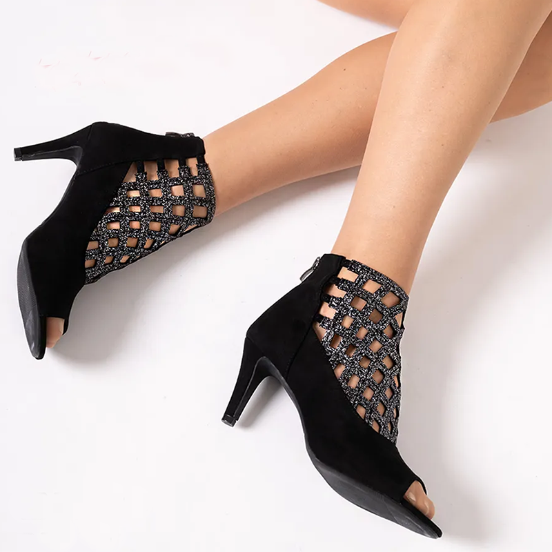 Women's Black Rhinestone Sparkling Glitter Customized Heel Dance Shoes