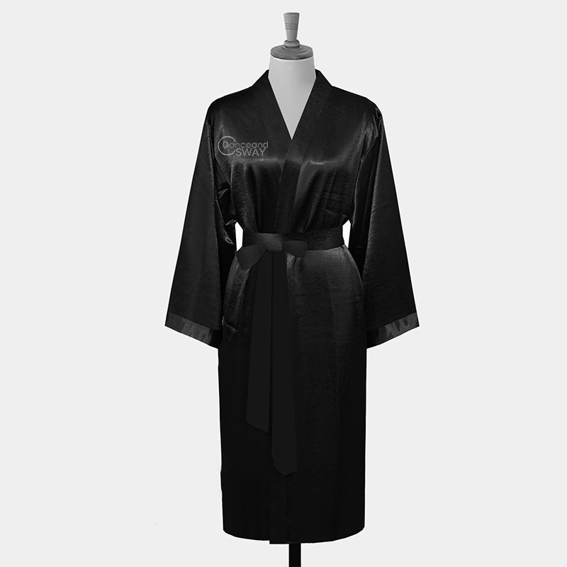 Women's Black Artificial Silk Dance Bathrobe Practice Performance Dance Wear