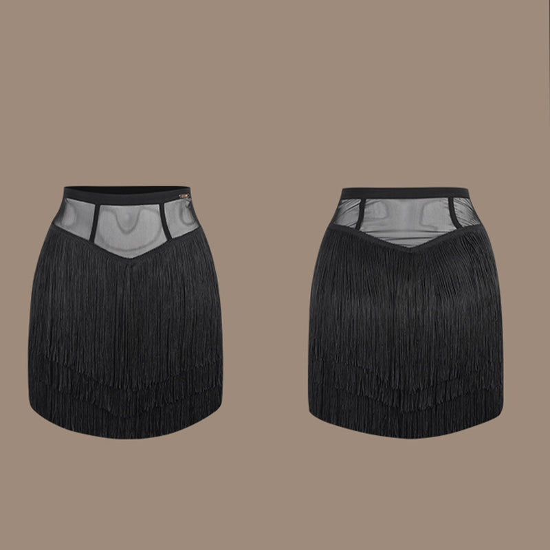 Women's Tassel Black Latin Dance Skirt Training Performance Dancewear