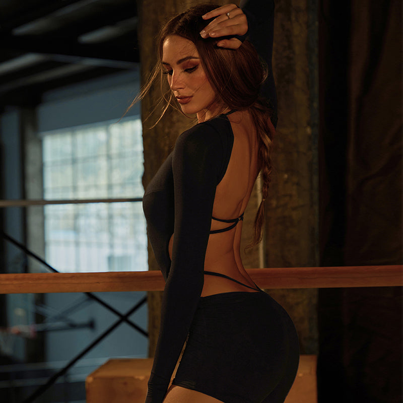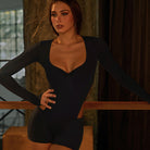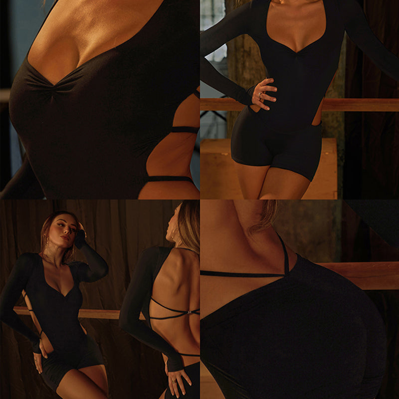 Z Women's Black Long Sleeve Latin Dance Wear Dance Tops Bodysuit