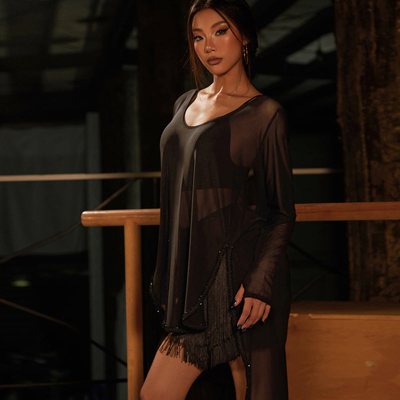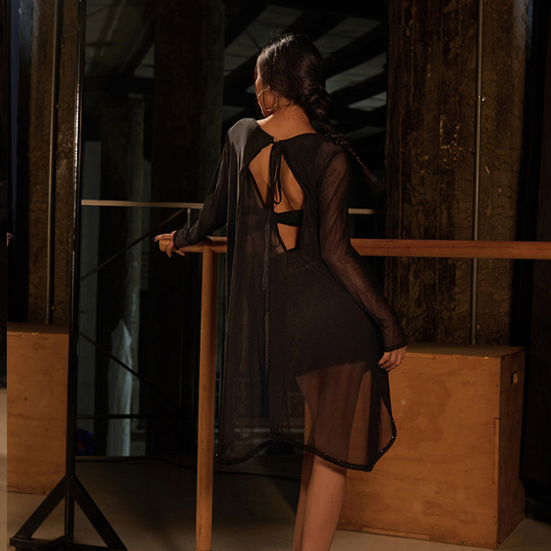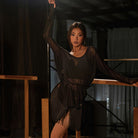 Z Women's Long Sleeve Mesh Latin Dance Dress Dance Wear Training Performance Dress