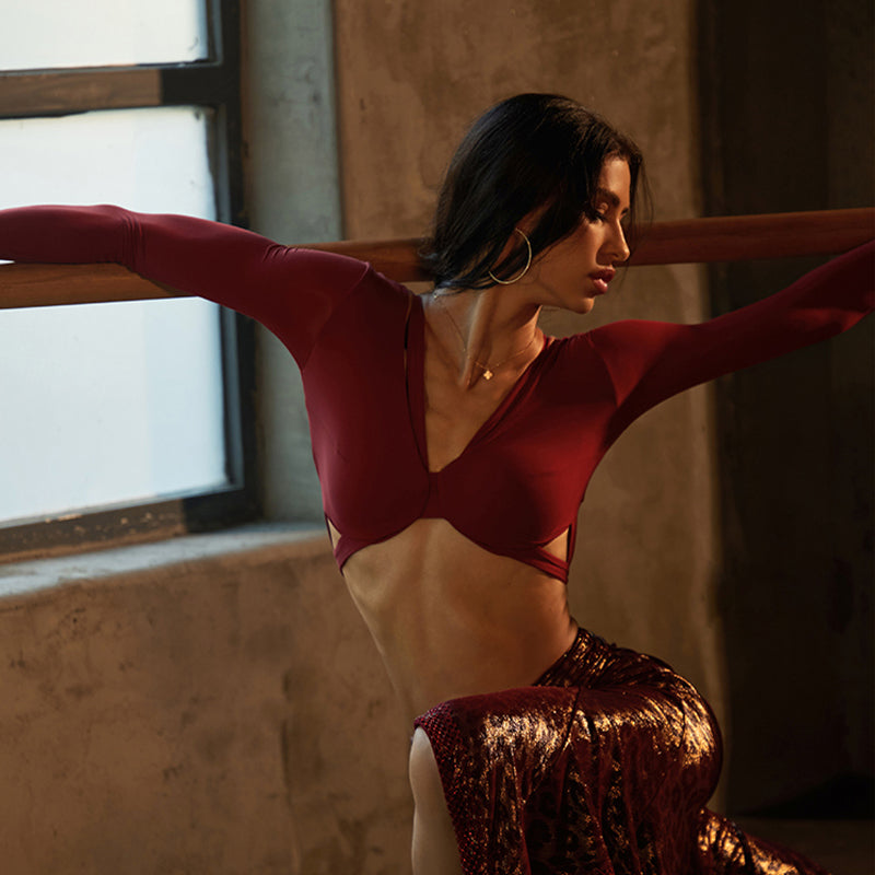 Z Women's V-Neck Long Sleeve Dance Tops Practice DanceWear