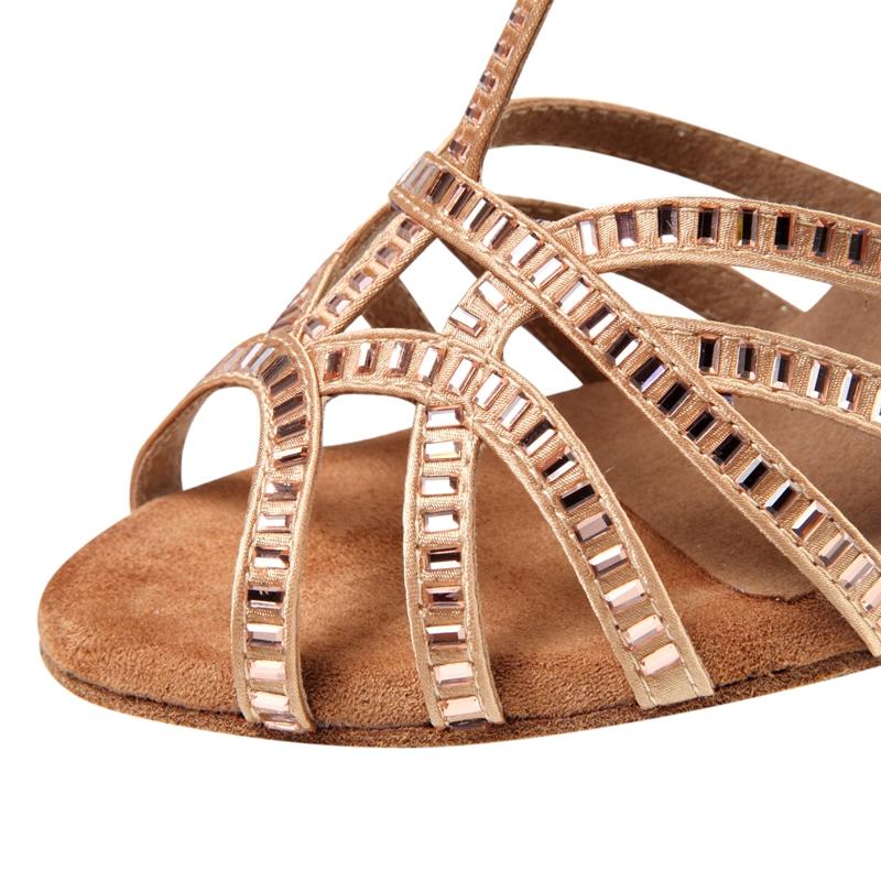 Women's Bronze Customized Heel Open Toe Satin Strappy Dance Shoes With Crystals