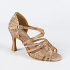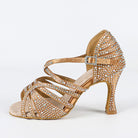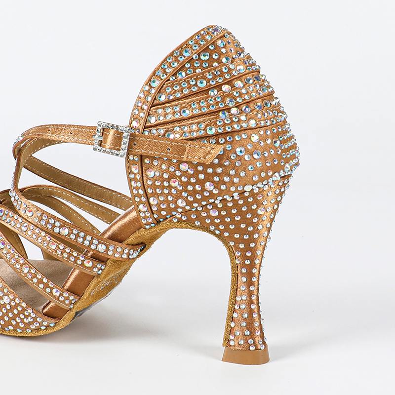 DS Women's Bronze Satin Strappy Rhinestone Customized Heel Ballroom Dance Shoes