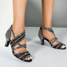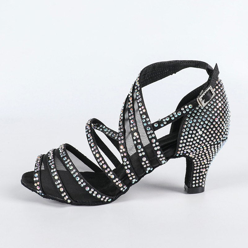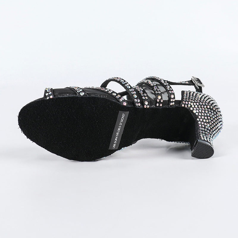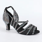 DS Women's Black Satin Rhinestone Customized Heel Salsa Latin Dance Shoes