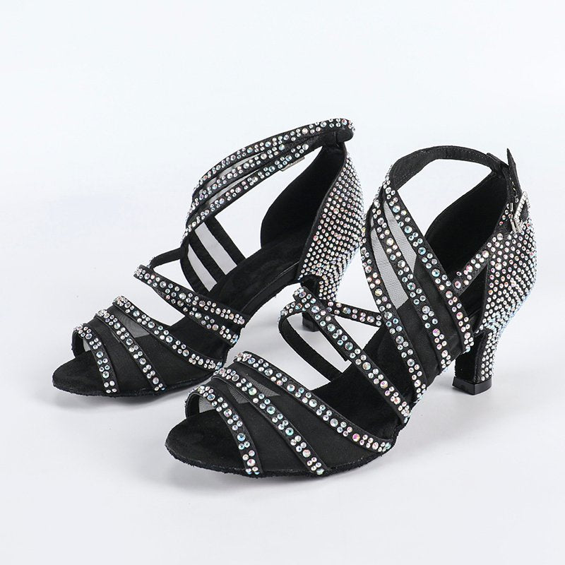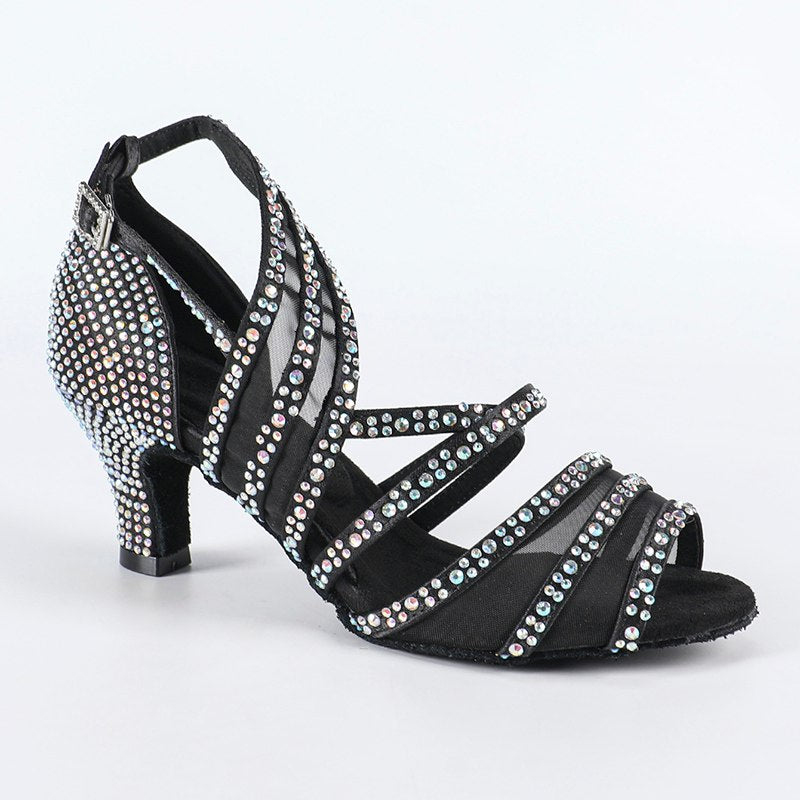 Women's Black Rhinestone Sparkling Glitter Customized Heel Dance Shoes