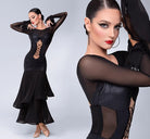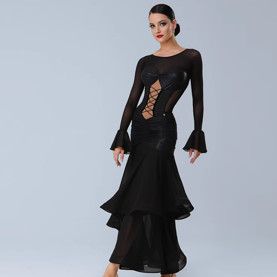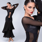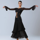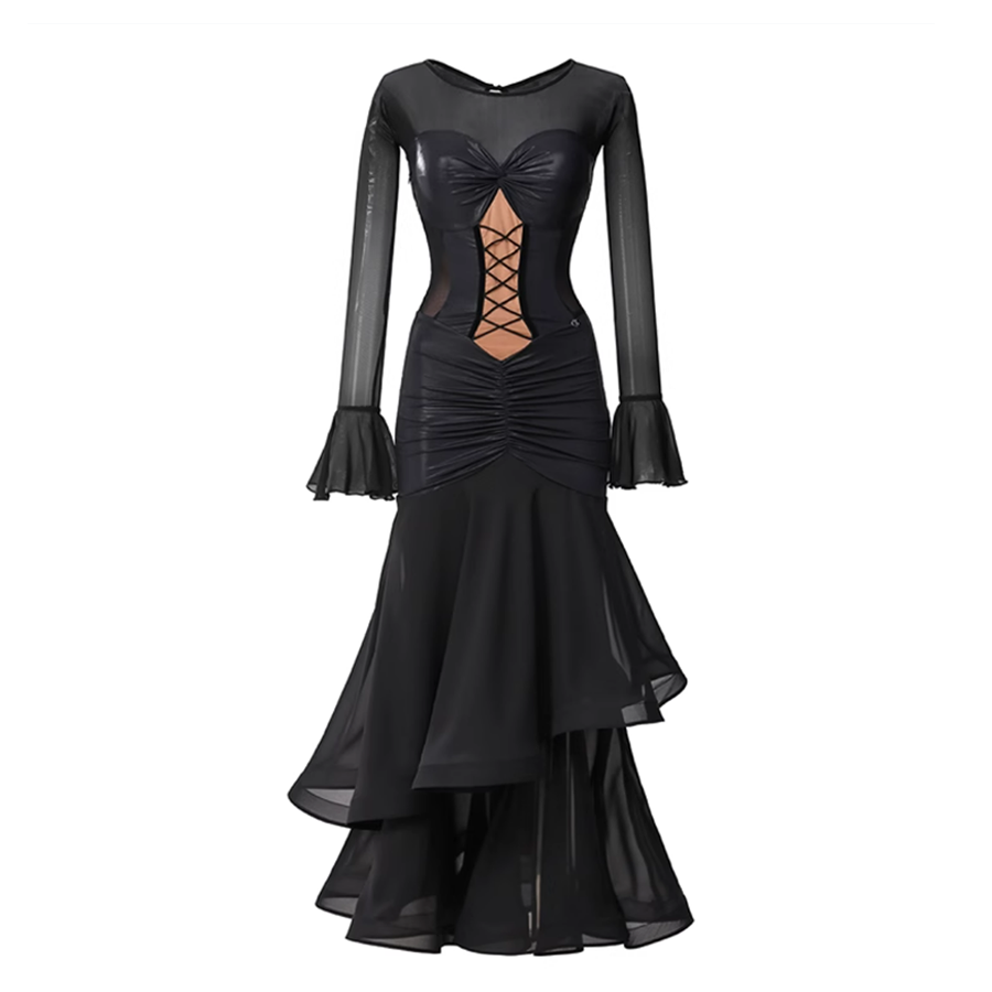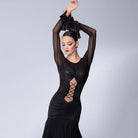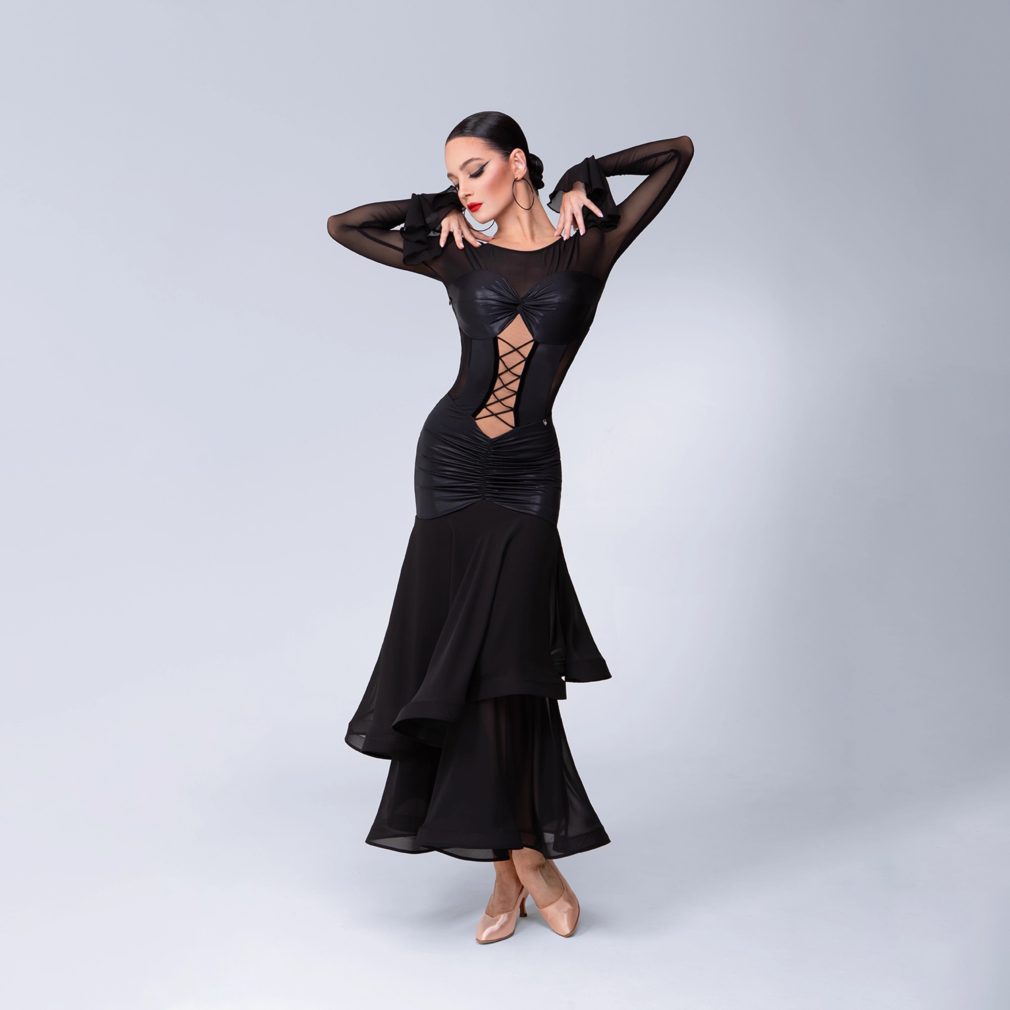 TID Customisable Women's Long Sleeve Black Dance Dresses Performance Competition Dancewear