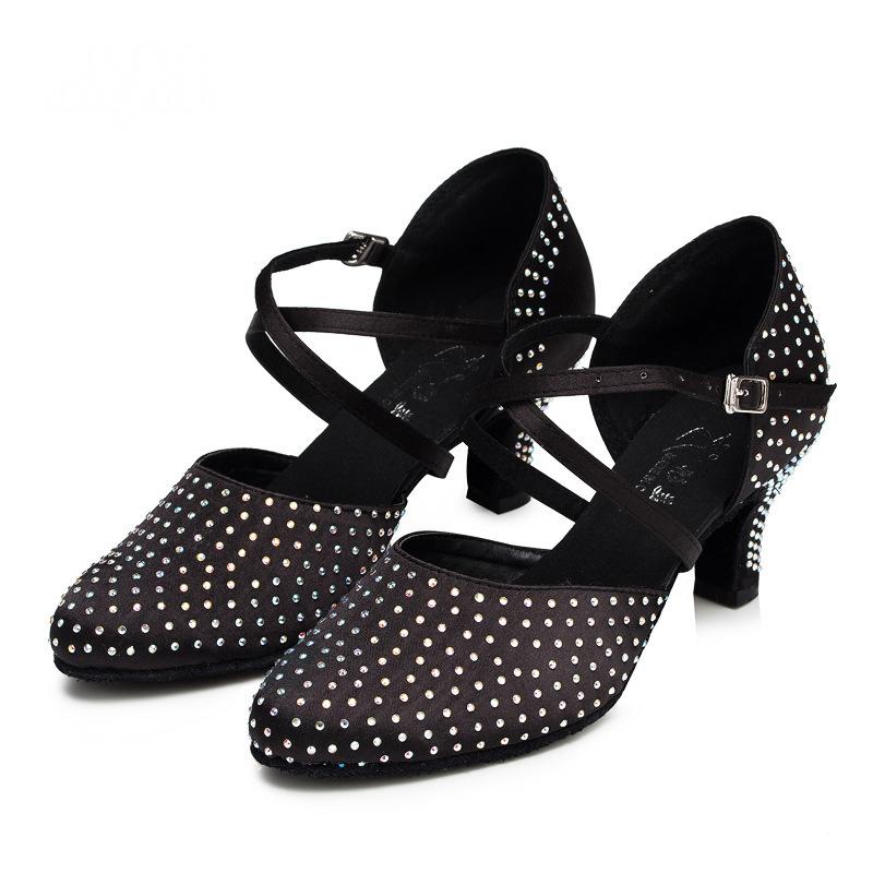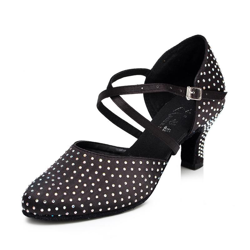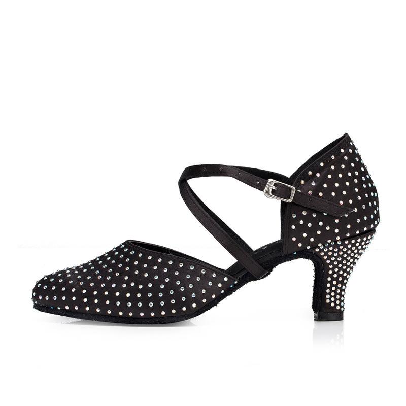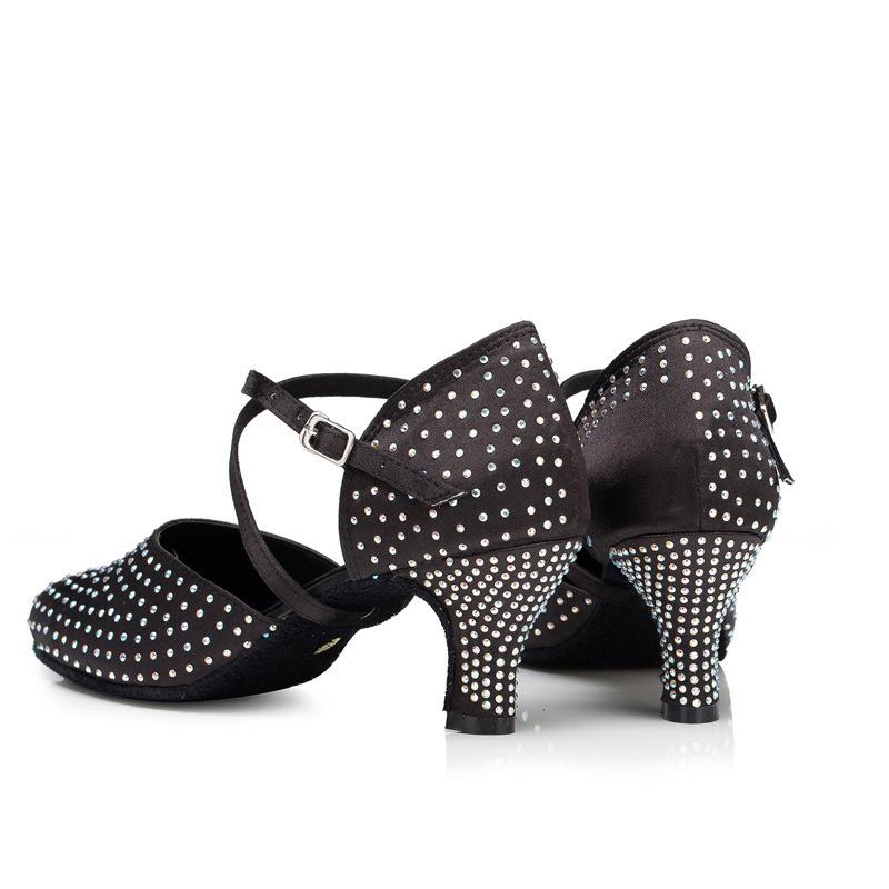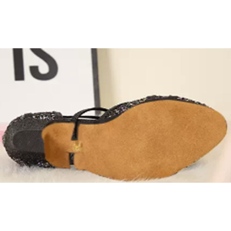 Women's Black Rhinestone Sparkling Glitter Customized Heel Dance Shoes