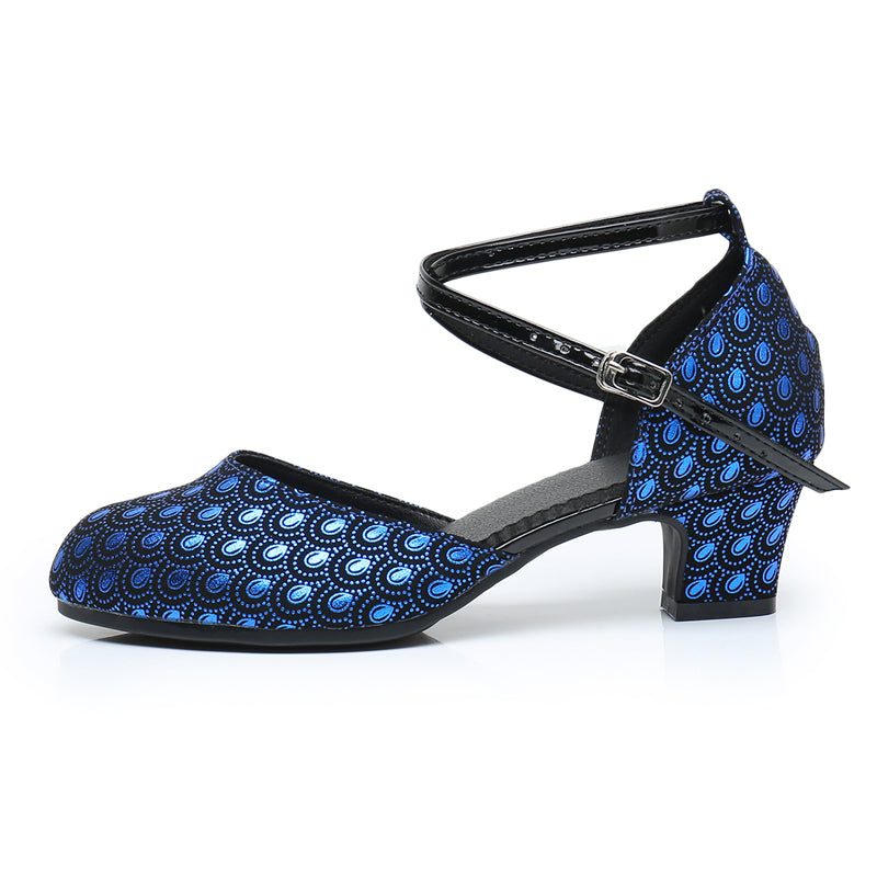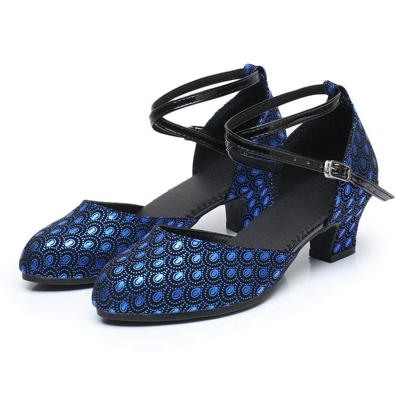 Women's Blue Rhinestone Satin Customized Heel Latin Dance Shoes