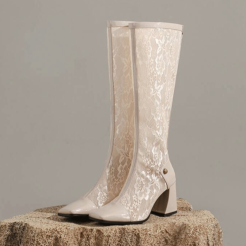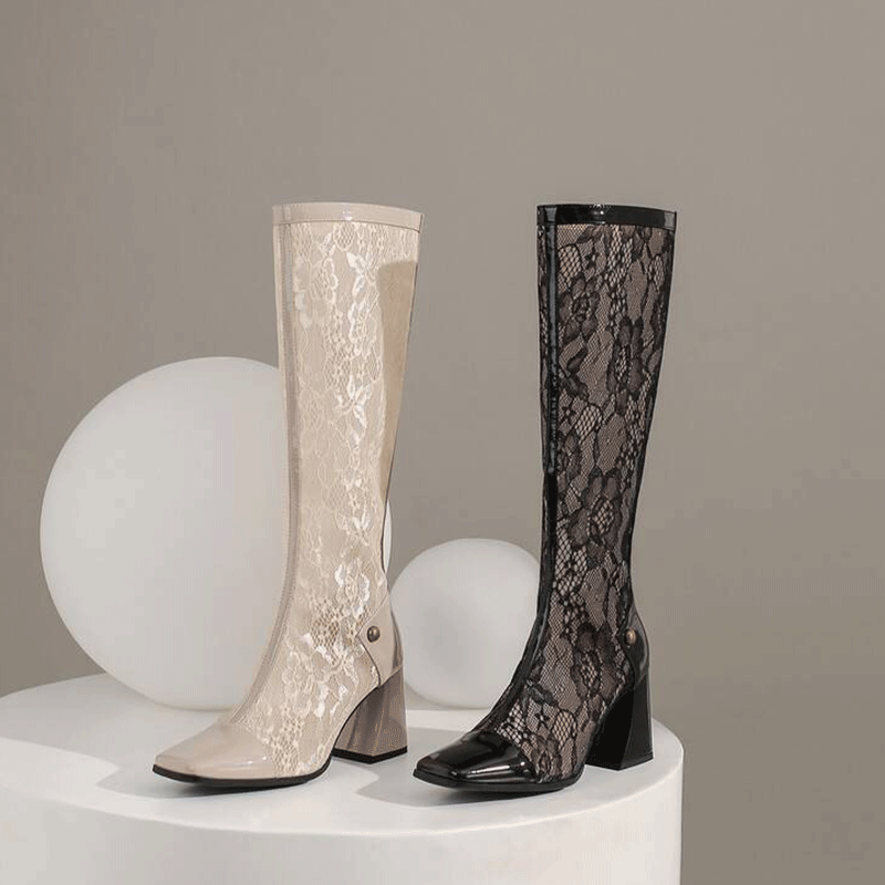 DS Damen Tanzschuhe mit Spitzenbesatz und individuellem Absatz, Tanzstiefel, Jazz-/Salsa-Tanzschuhe
