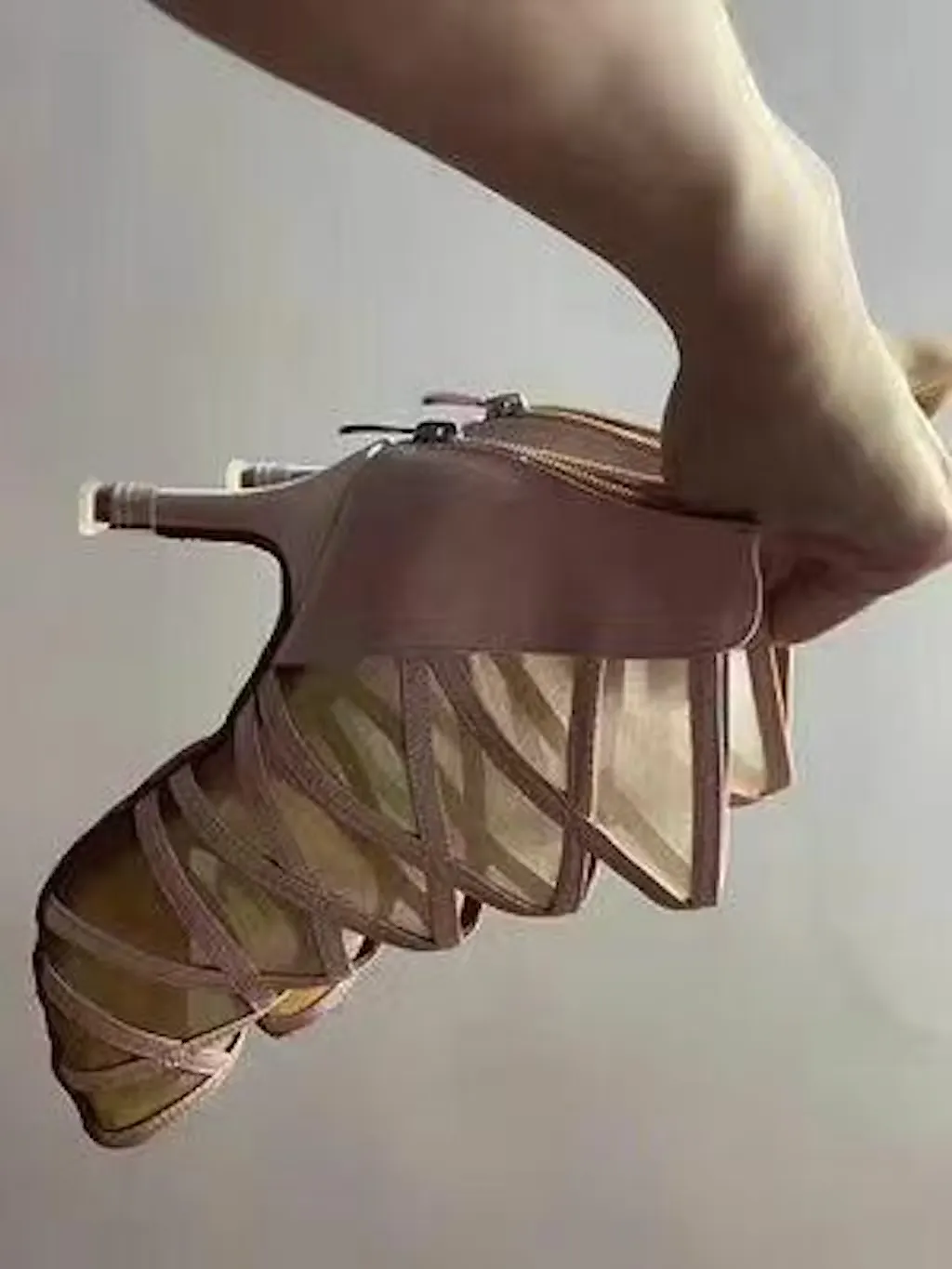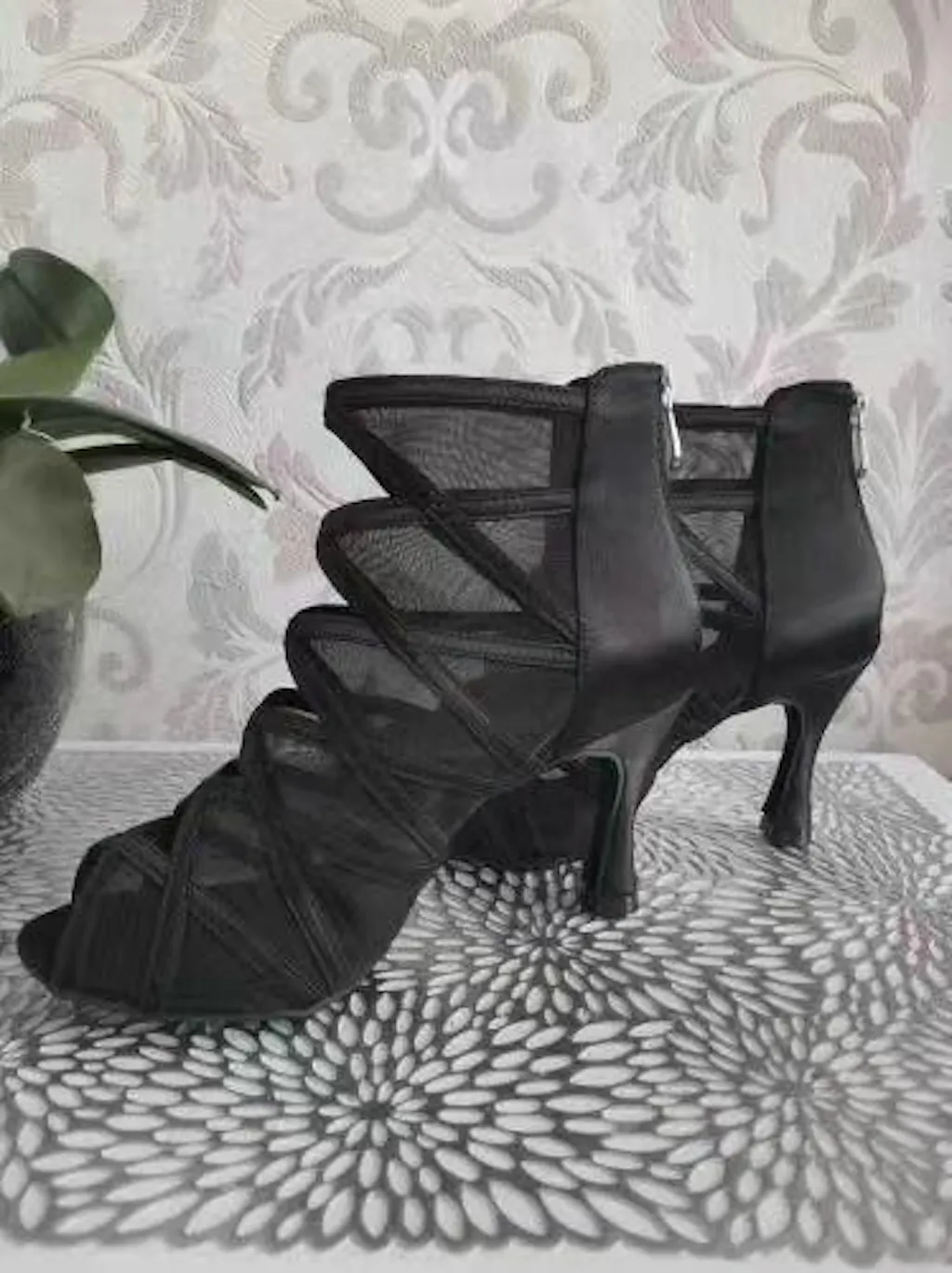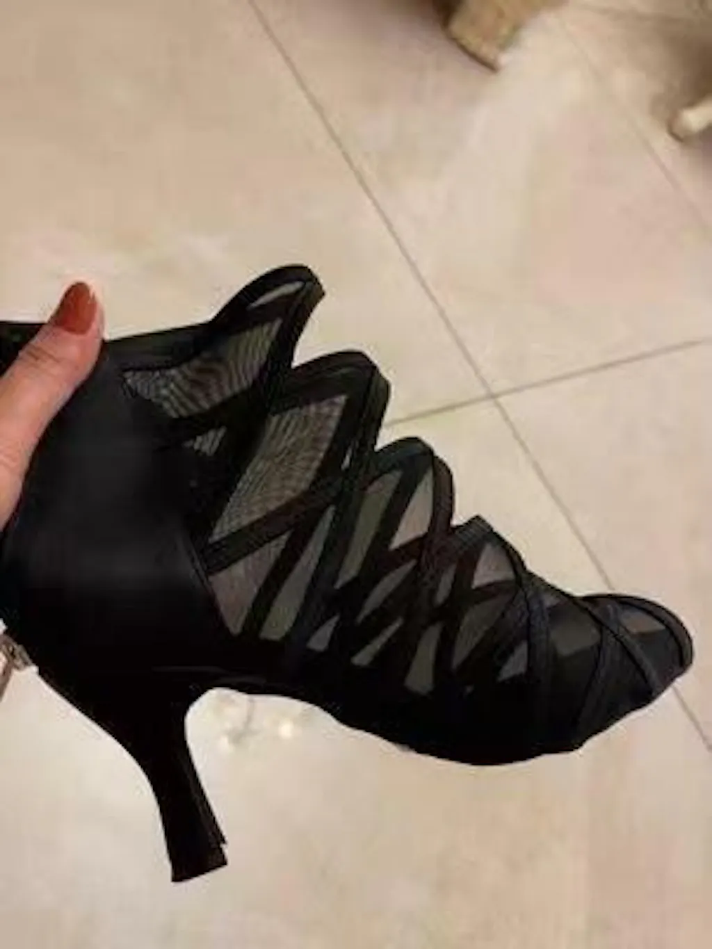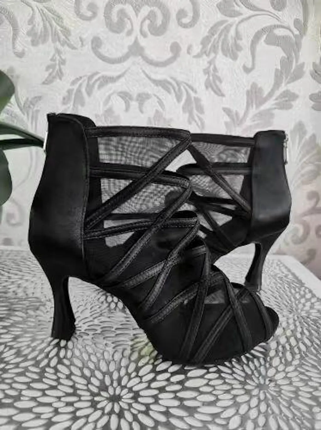 DS Damen Tanzschuhe mit Spitzenbesatz und individuellem Absatz, Tanzstiefel, Jazz-/Salsa-Tanzschuhe
