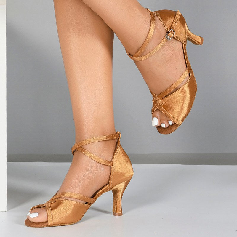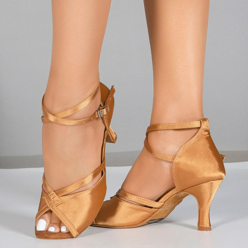 Damen Satin Samt Individueller Absatz Gesellschaftstanzschuhe Lateinschuhe