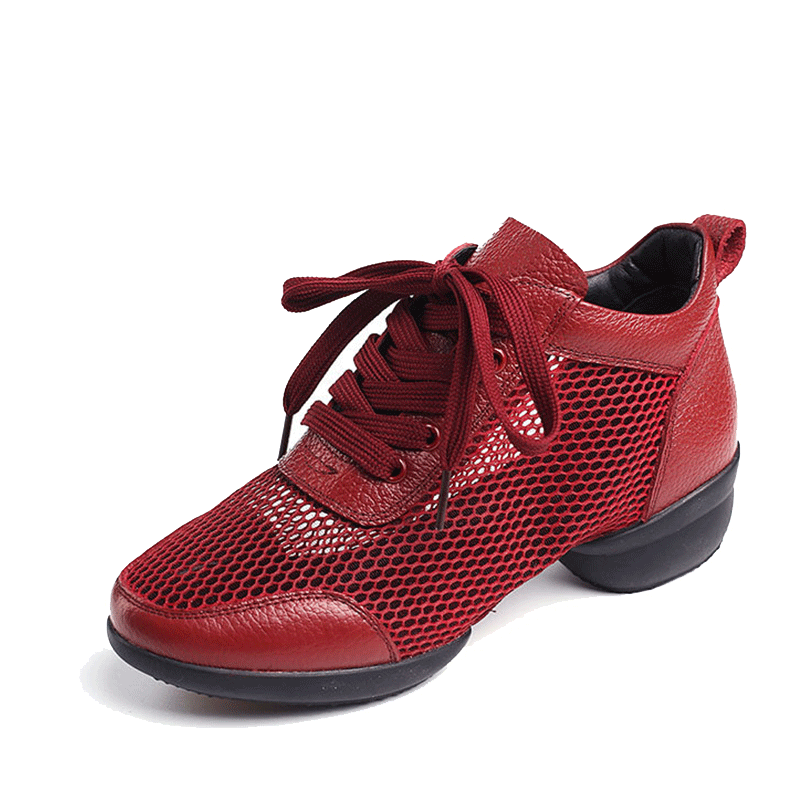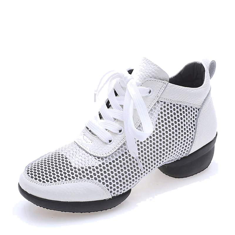 Damen Leder Mesh Schnürung 4cm Absatz Tanz Sneakers Übungstanzschuhe Jazz Dance
