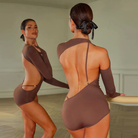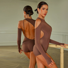 Z Damen-Bodysuit mit Rundhalsausschnitt, langen Ärmeln, rückenfrei, Tanzkleidung