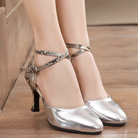 FHX Damen Tanzschuhe mit Absatz und Strasssteinen in Silber