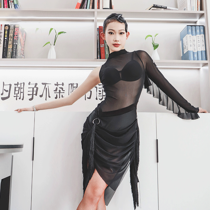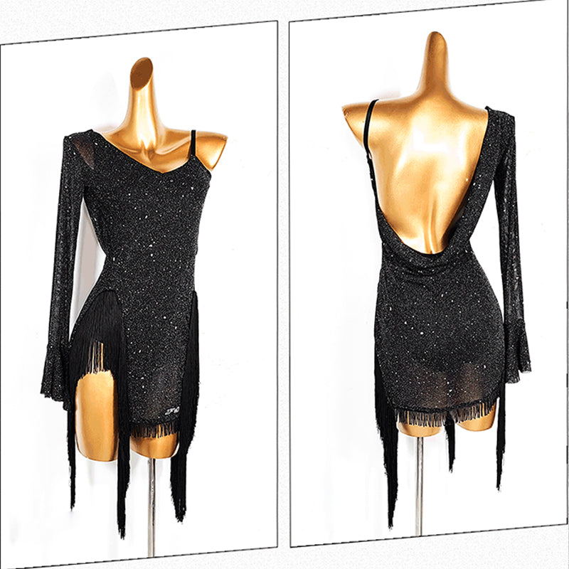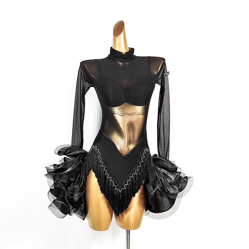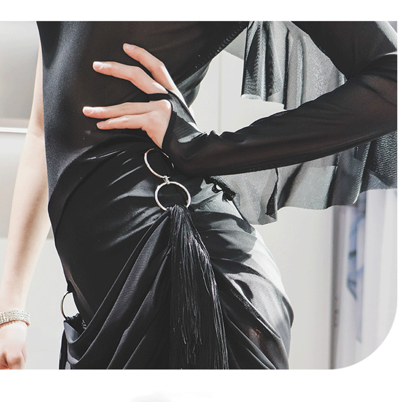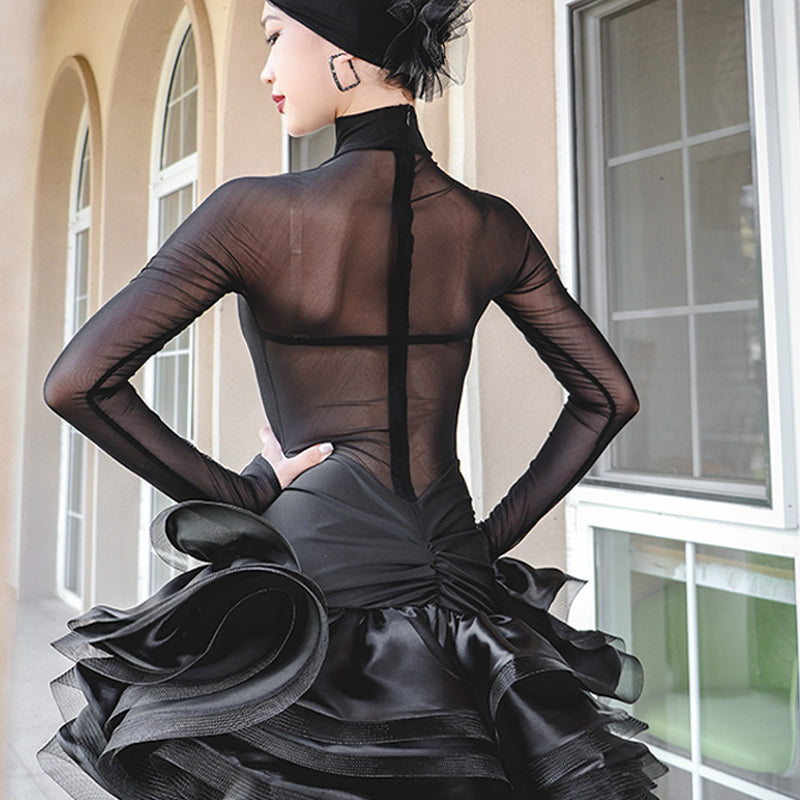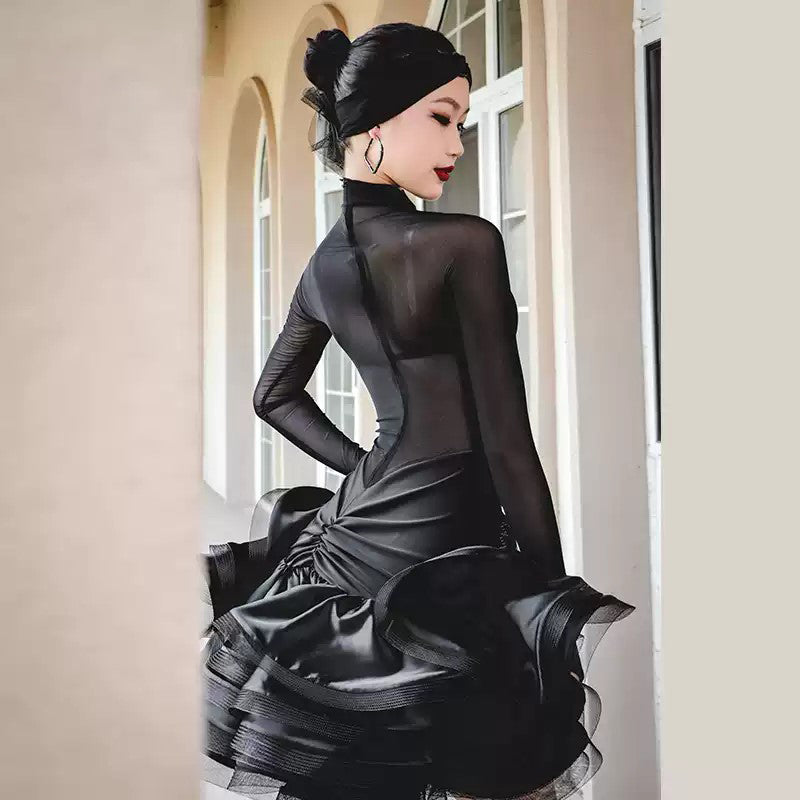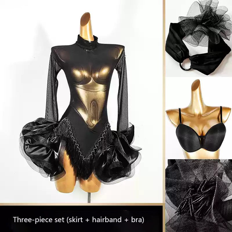 TID Personalisierbare langärmlige schwarze Tanzkleider für Damen, für Performance- und Wettkampf-Tanzbekleidung