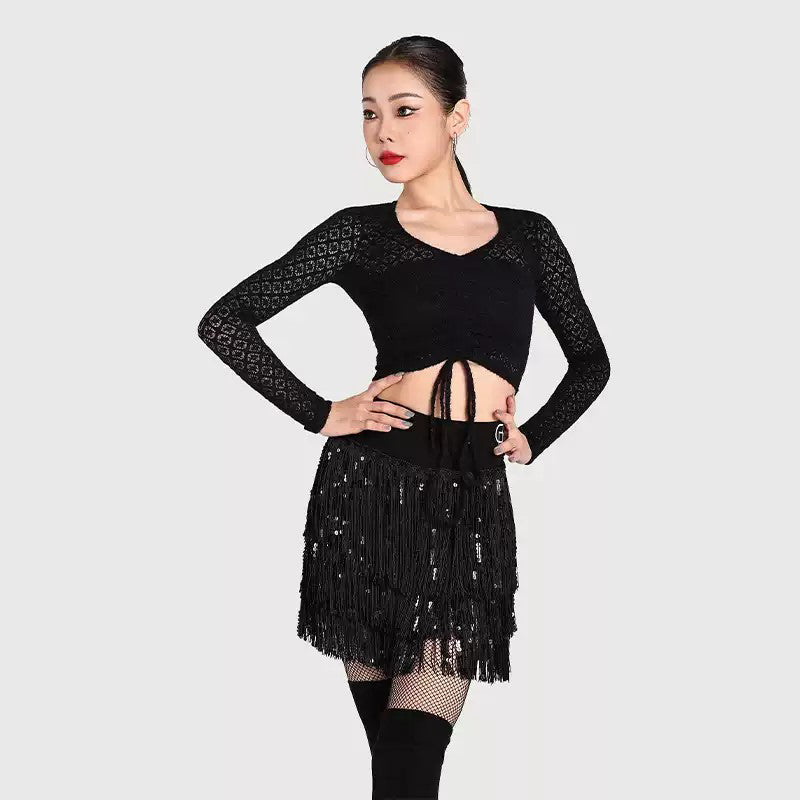 Z Damen-Tanzrock mit Schlitz für lateinamerikanische Tänze, Trainings- und Performance-Kleidung