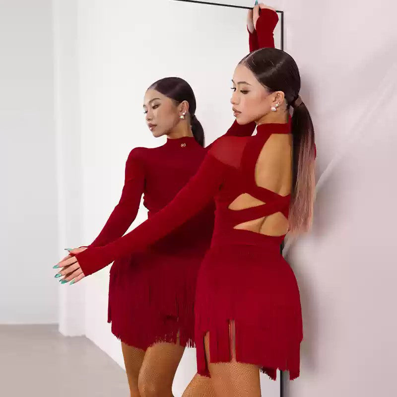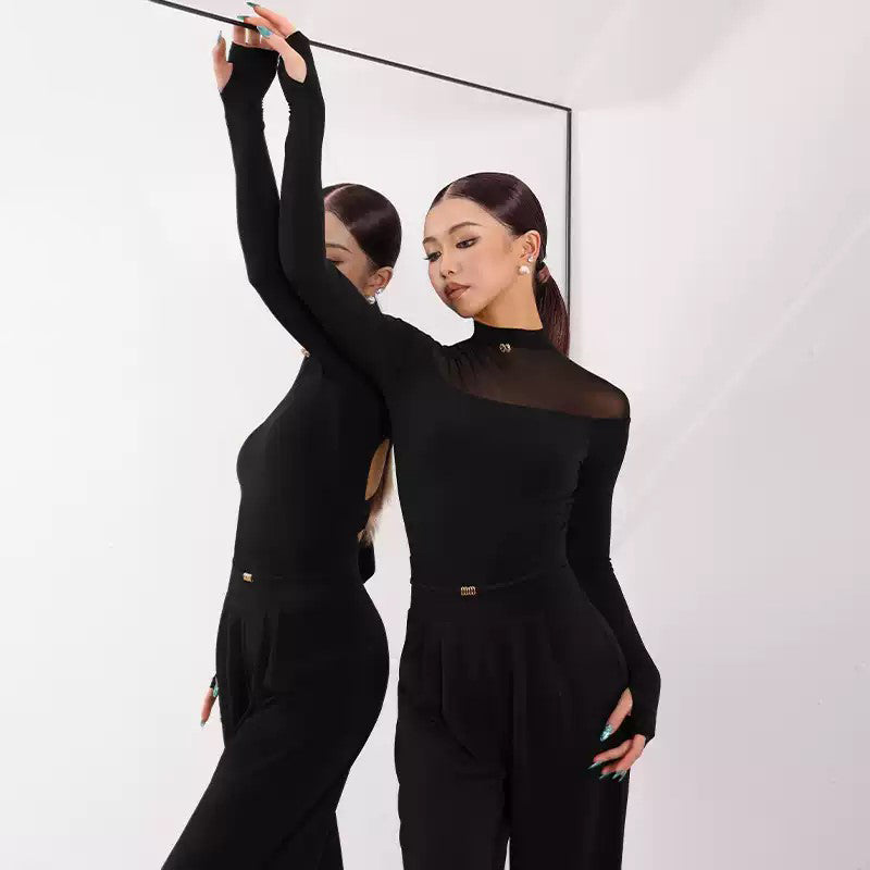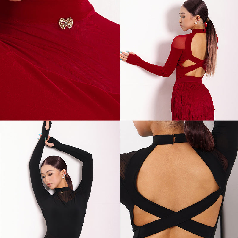 Z Damen Langarm Latein Übungstanzbekleidung Tanzbody Leotards