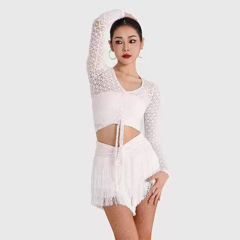 Z Damen Tanzkleid aus Milchseide, mit Quaste, Tanzbekleidung, Trainings- und Leistungskleid